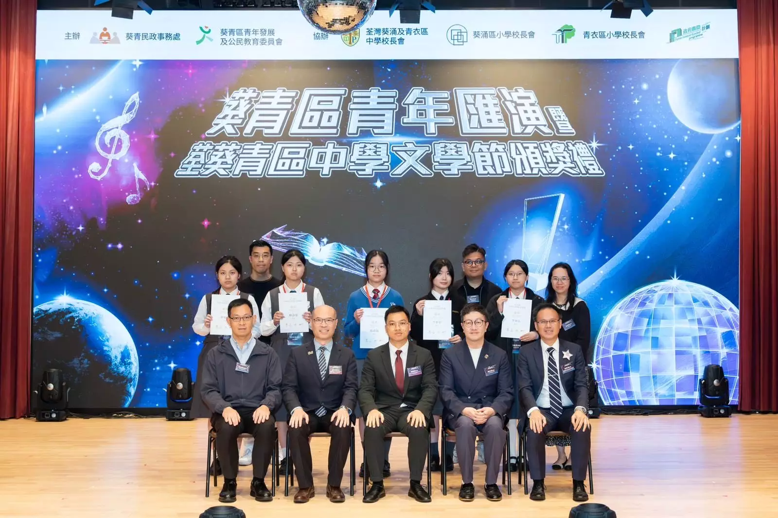 由葵青民政處及葵青區青年發展及公民教育委員會主辦嘅「葵青區青年匯演暨葵青區中學文學節頒獎禮」已於21/3圓滿舉行。今年活動以「宇宙銀河」為主題,寓意每一位青年都好似夜空中嘅星星一樣,各有光芒、各有特色。浩瀚銀河象徵無限可能,亦照亮青年於文學、藝術與舞台上勇敢追夢、盡展才華嘅青春身影。