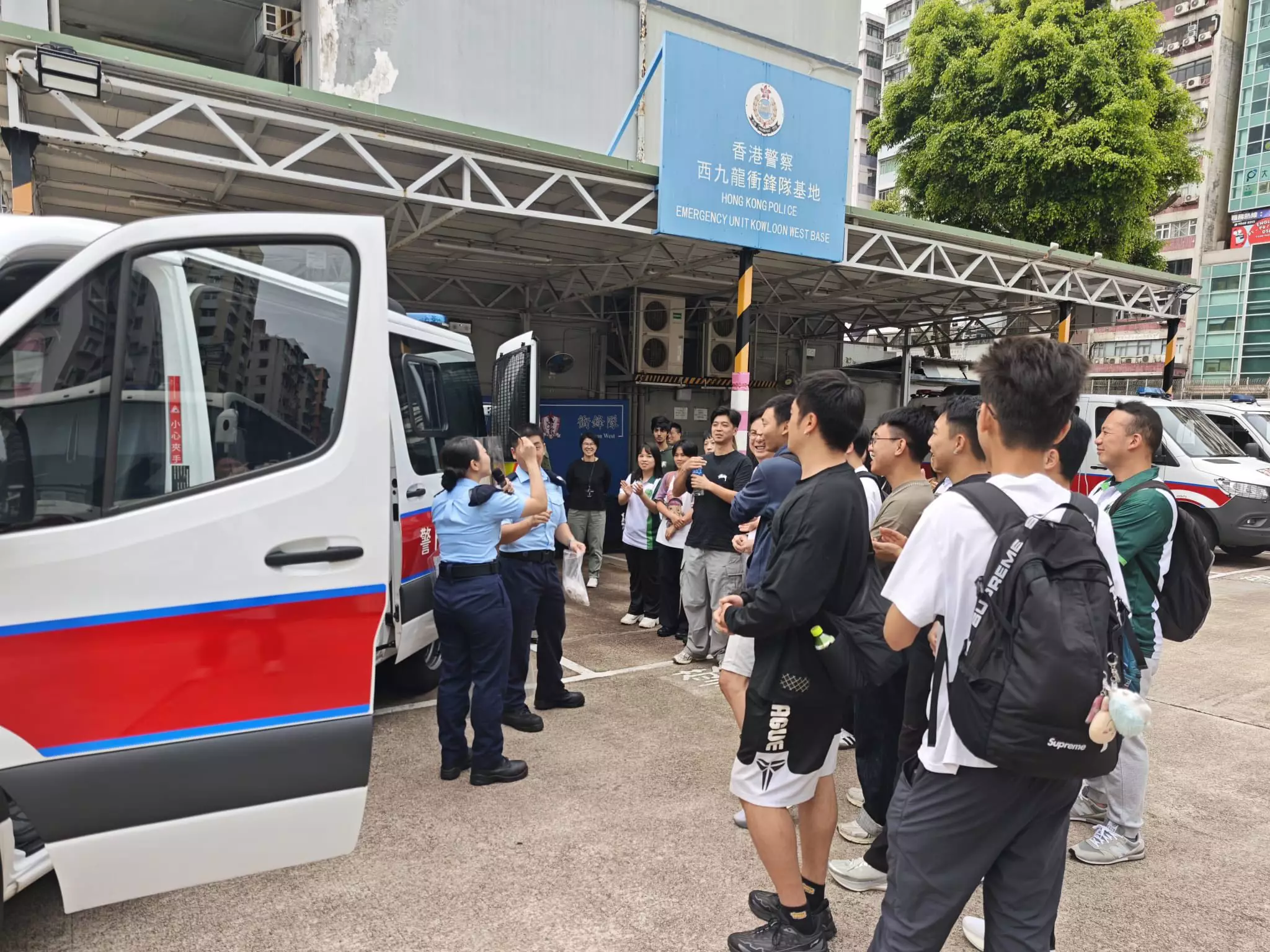 今日(2026-03-28)香港浸會大學及香港都會大學嘅防騙大使、招籽計劃及造星計劃學員共27人,大家浩浩蕩蕩一同來到參觀西九龍總區衝鋒隊行動基地。