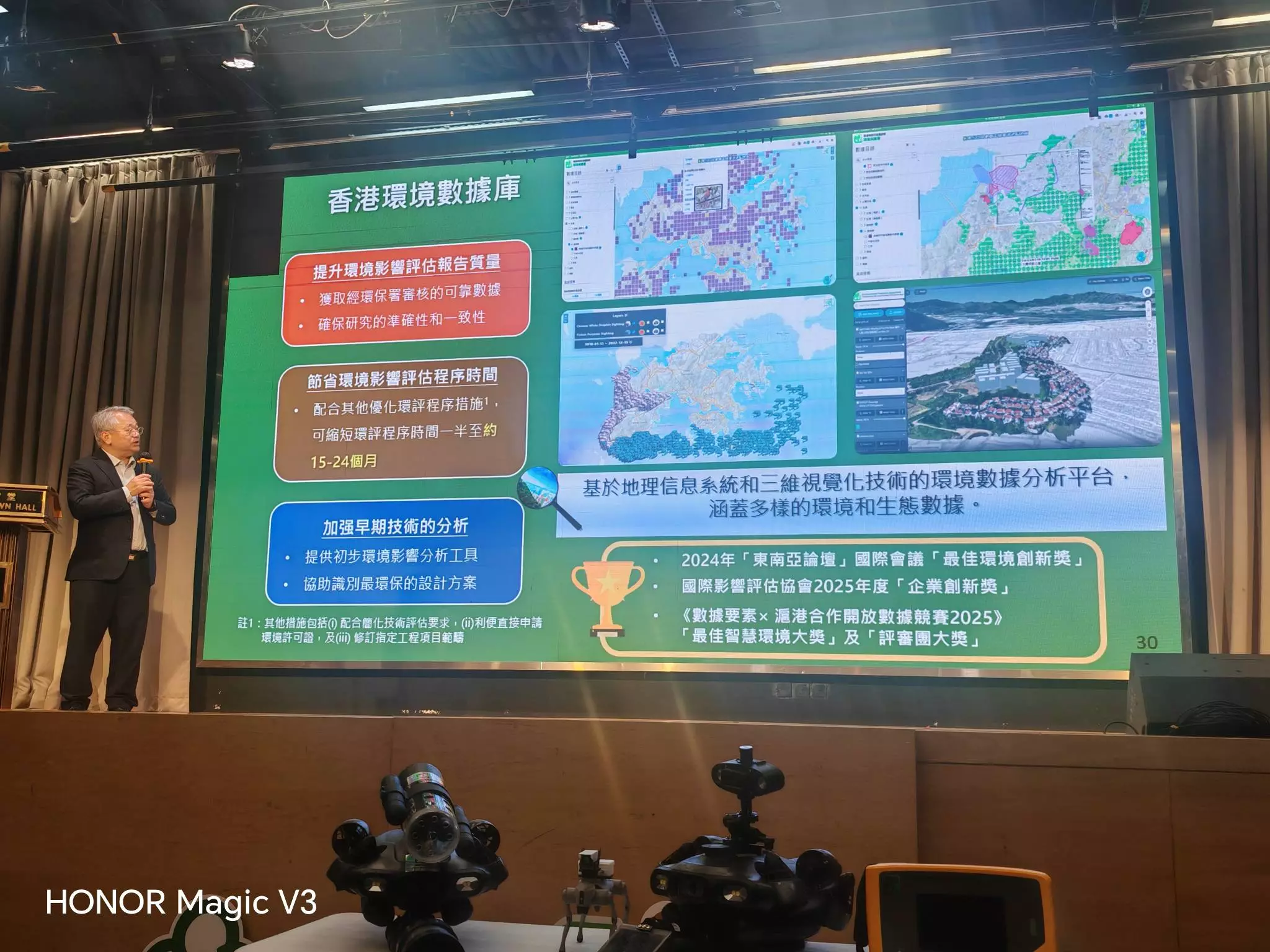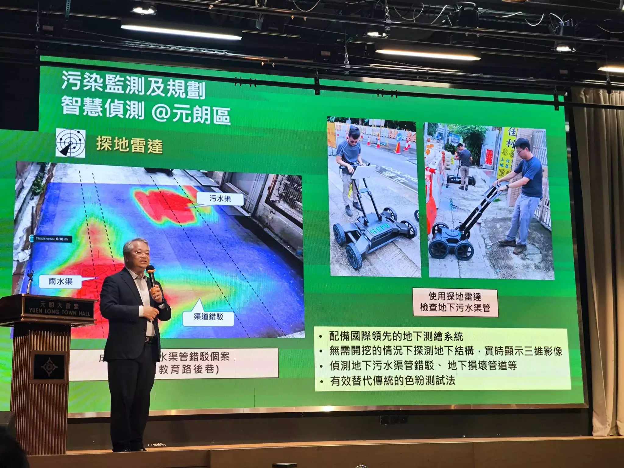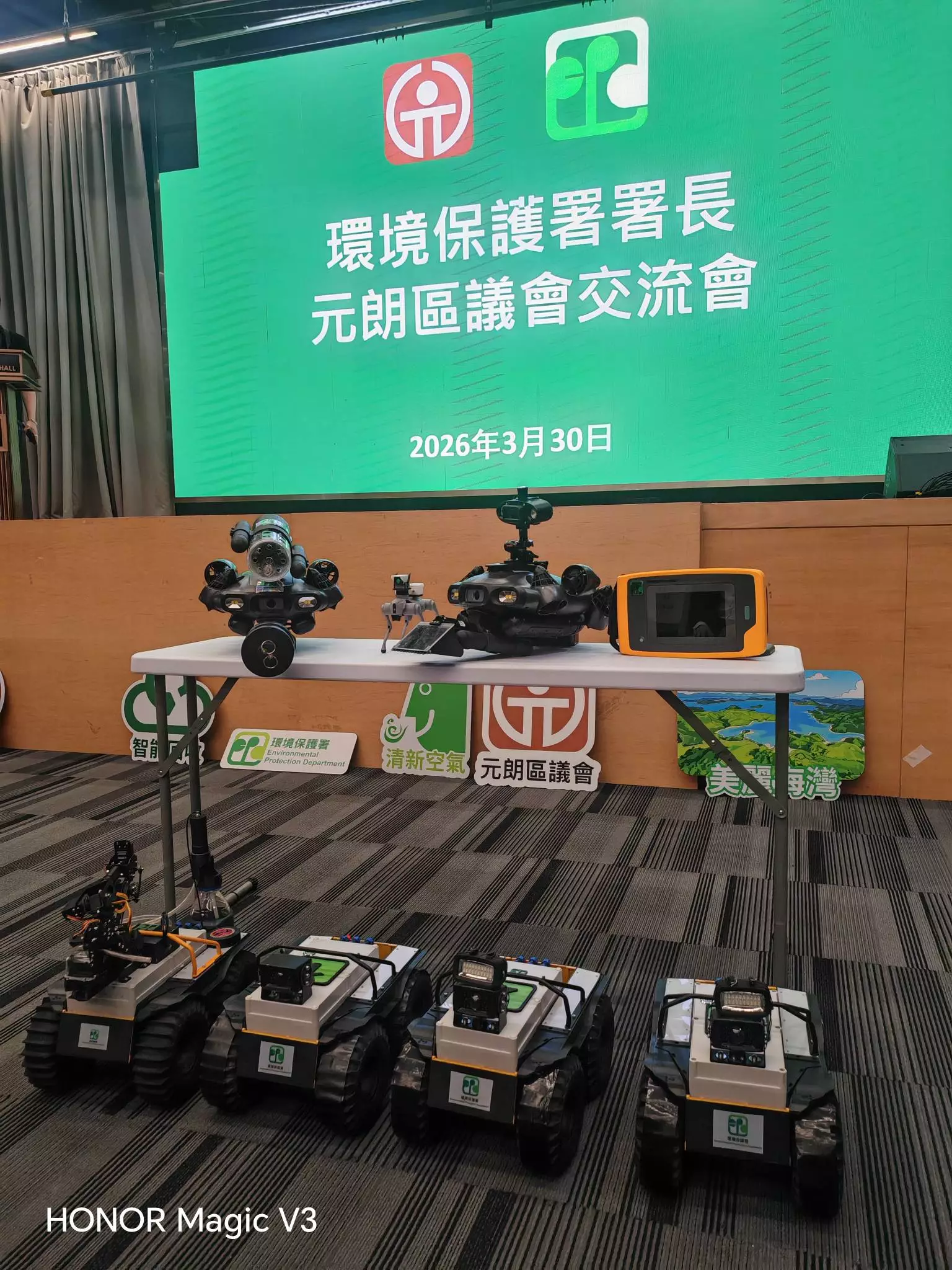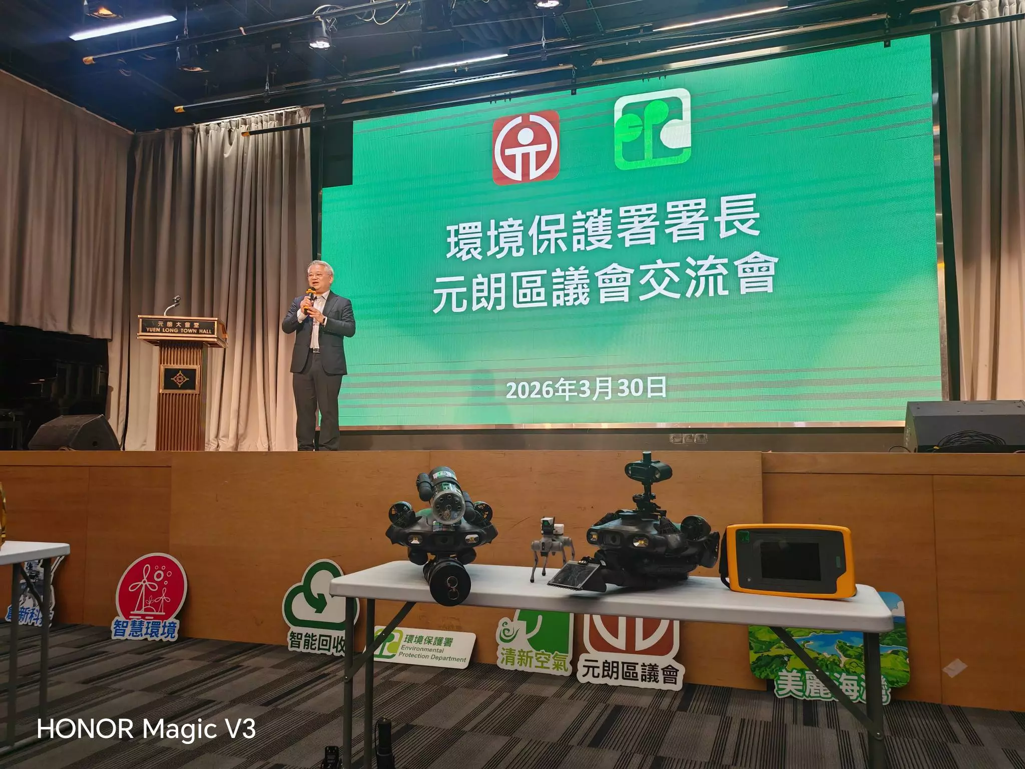 環境保護署署長近日與元朗區議會舉行交流會,講解區內多項環境保護工作的最新進展。會上,環保署署長重點介紹水質管理、空氣質素改善、污水錯接雨水渠問題及回收工作等範疇。他同時提到,署方近年積極引入高科技設備協助執法,包括使用機械狗、無人船及無人機,提升監測及偵測效率。例如無人機可進行高空巡查偏遠區域,無人船能收集河道水樣,而機械狗則能進入危險地帶執行勘察任務。