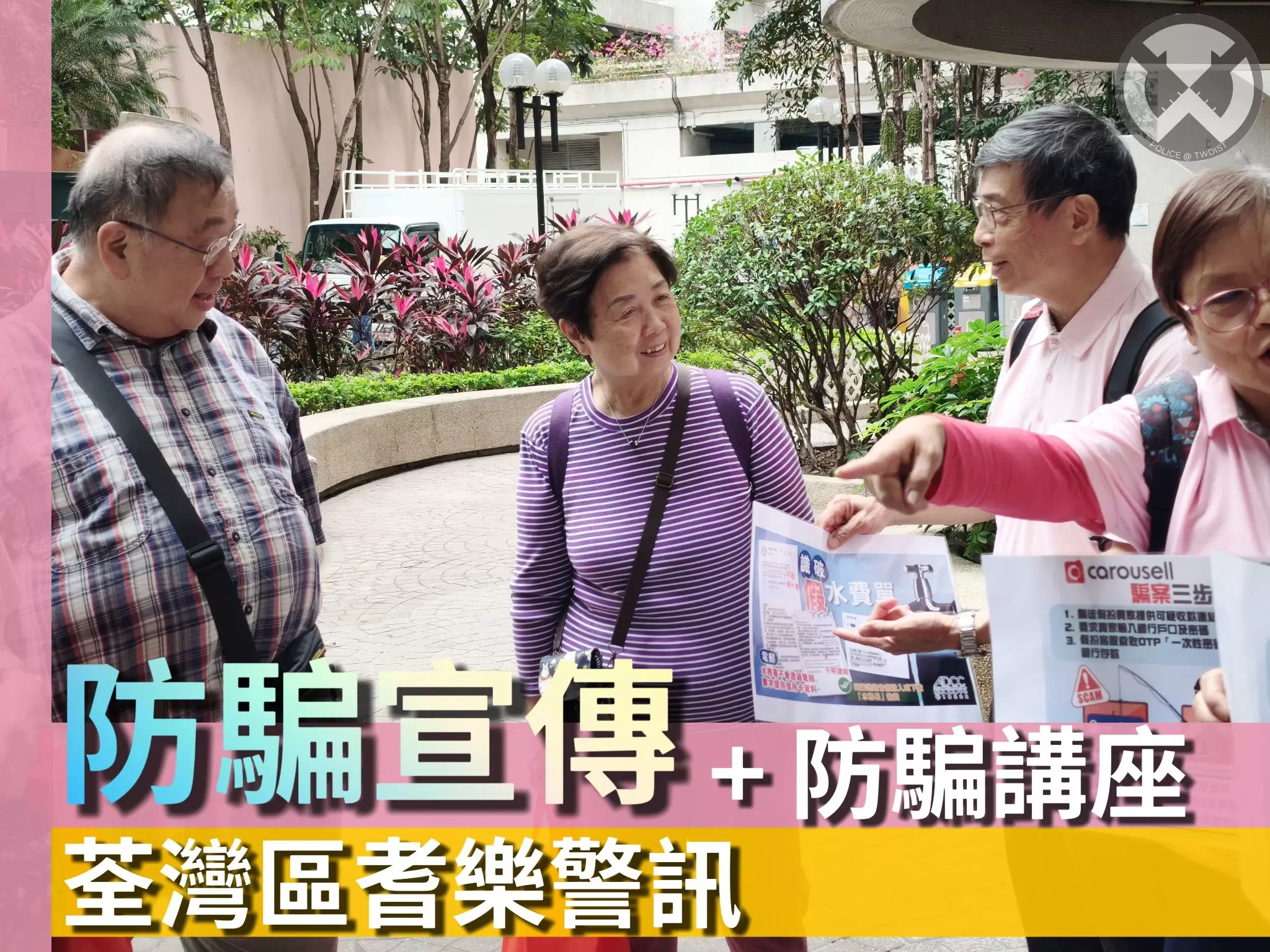 連結已複製! 喺3月31日 ,荃灣警民關係組 、新界南總區防止罪案辦公室人員 ,去到海濱花園耆學軒中心舉辦防騙講座,向接近50名中心老友記講解最新嘅騙案資訊!更即場播放由反詐騙協調中心精心製作嘅防騙大劇院短劇,以輕鬆嘅手法教授老友記遇到可疑來電時,記緊保持鎮定、唔好理佢,如懷疑受騙,即打防騙易熱線18222查詢! 另外,荃灣耆樂警訊嘅老友記亦向中心長者及街坊派發防騙傳單及宣揚防騙訊息,再次提醒大家要提提身邊人!齊齊提高警覺!
