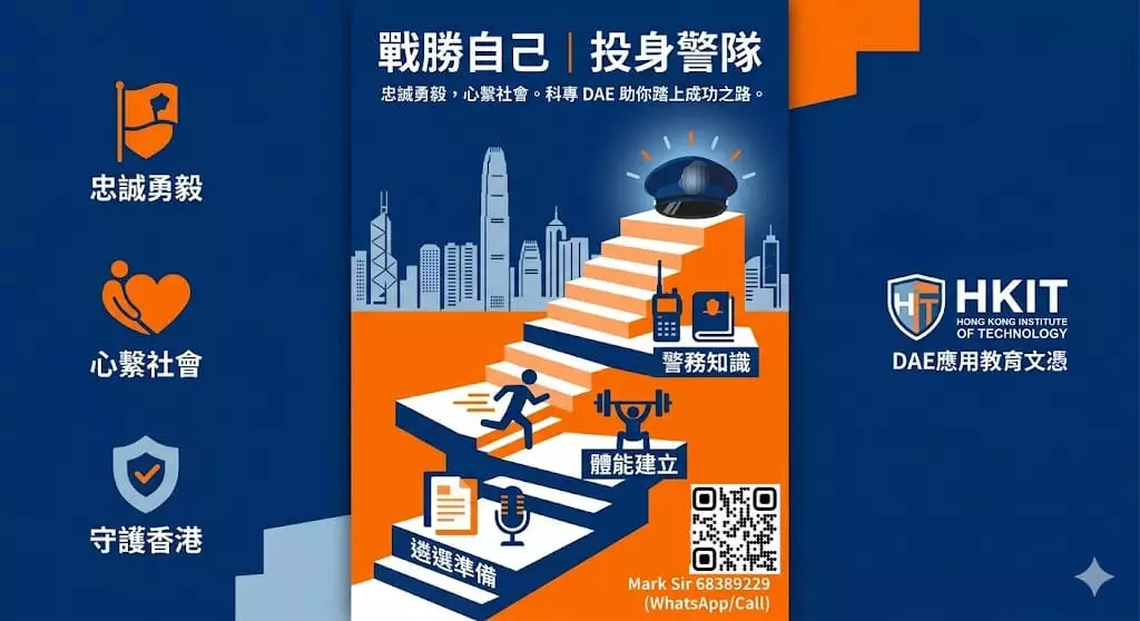歡迎大家報讀由 #香港科技專上書院(科專HKIT)與「 #警察招募組 」及「 #警察學院 」攜手開辦全新的「#學警預備訓練」課程
