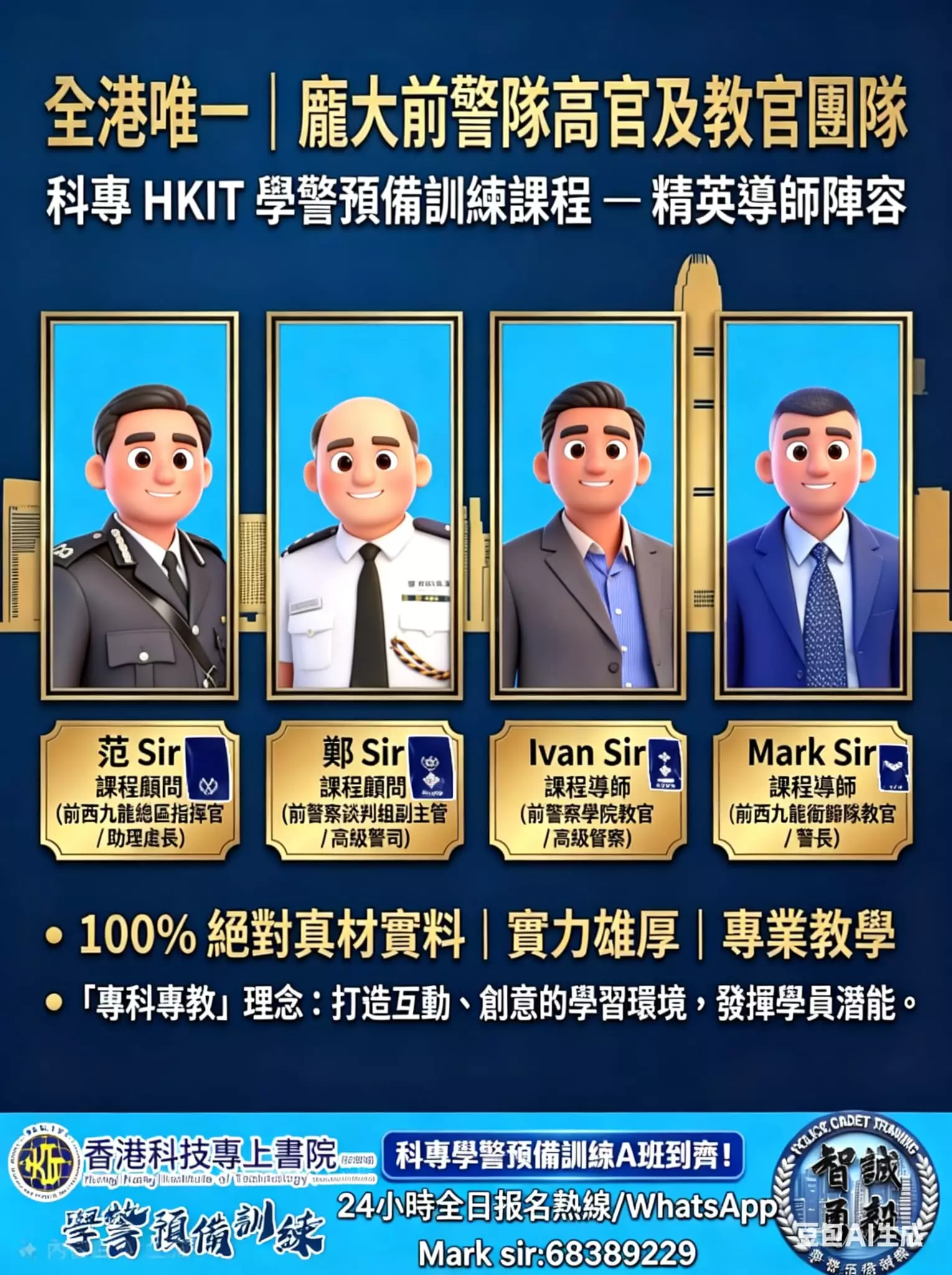 科專:由多位前「警隊高級長官及資深教官 | 擔任「學警」課程顧問及導師」| 實力「雄厚」| 絕對值得信賴
