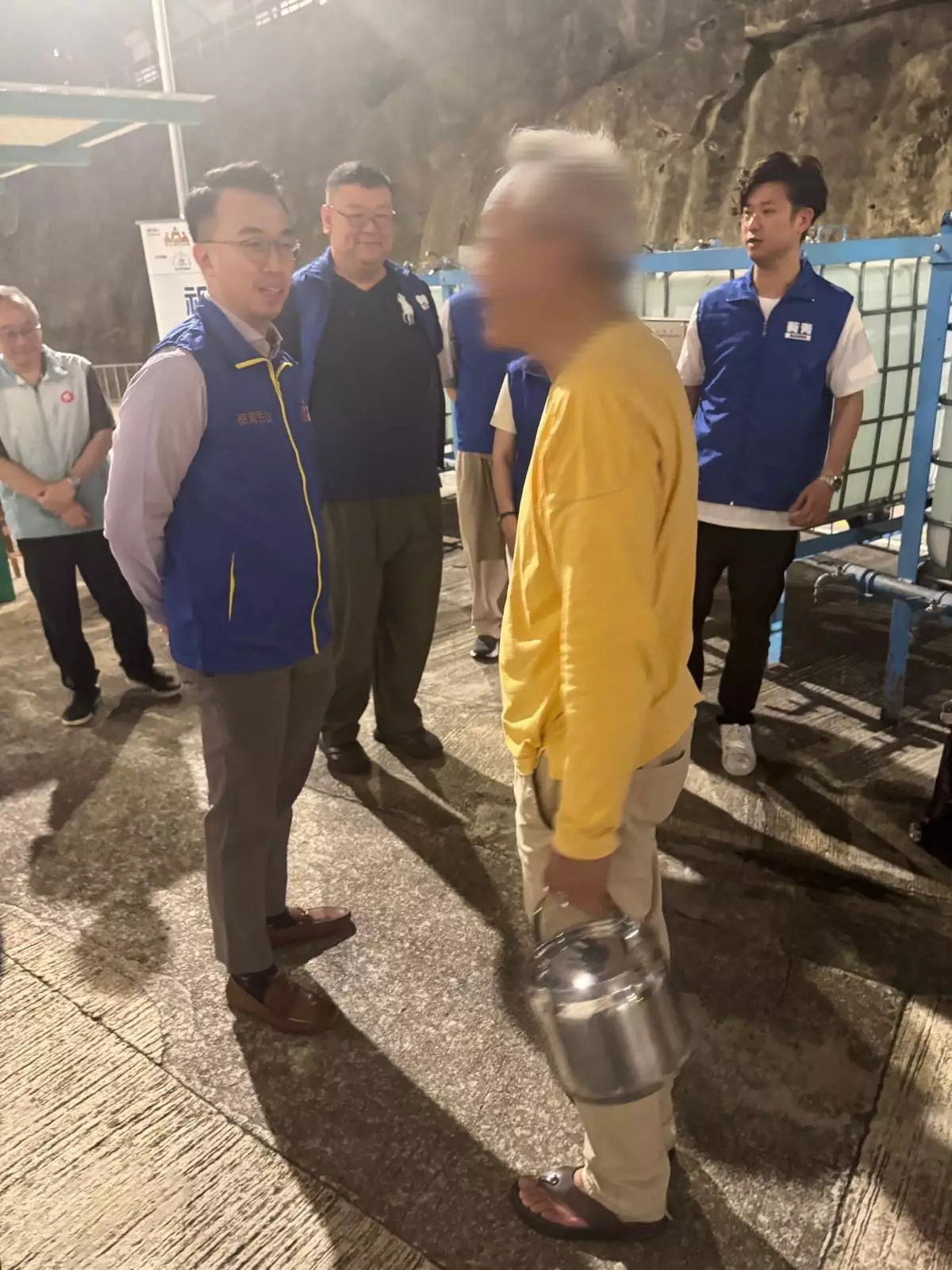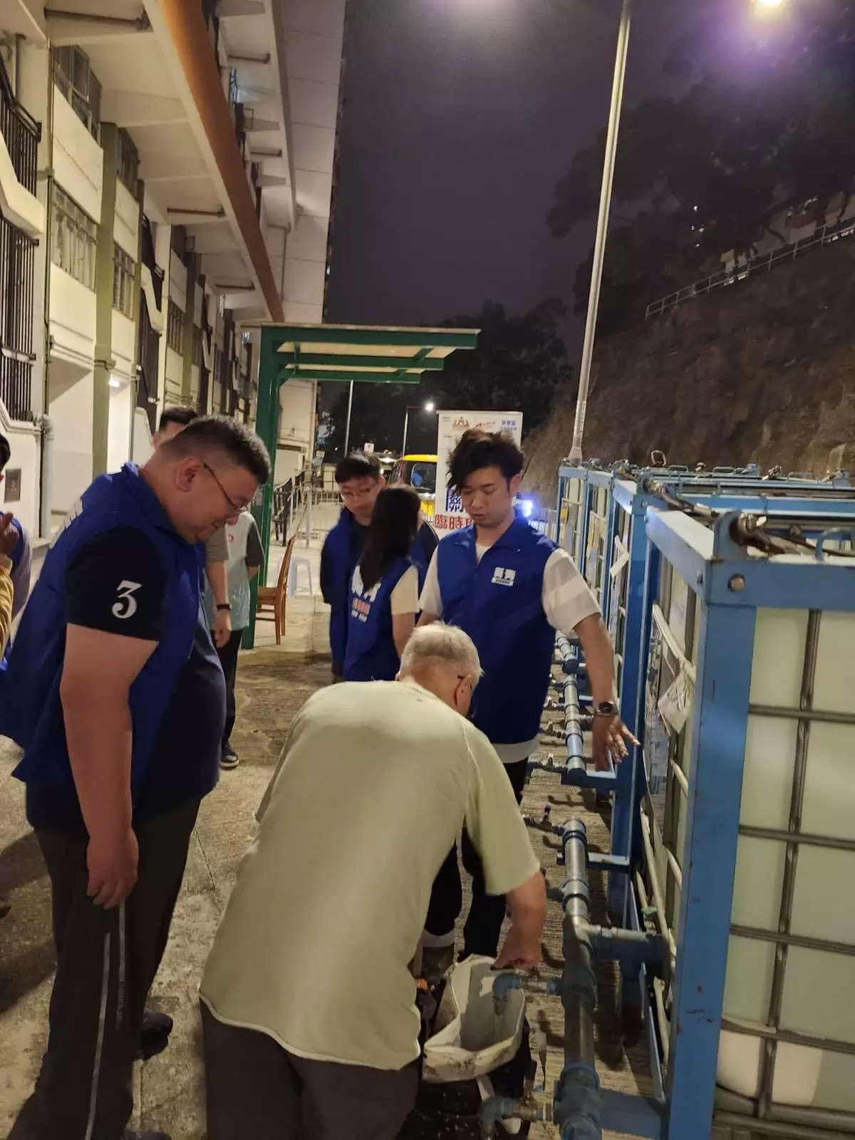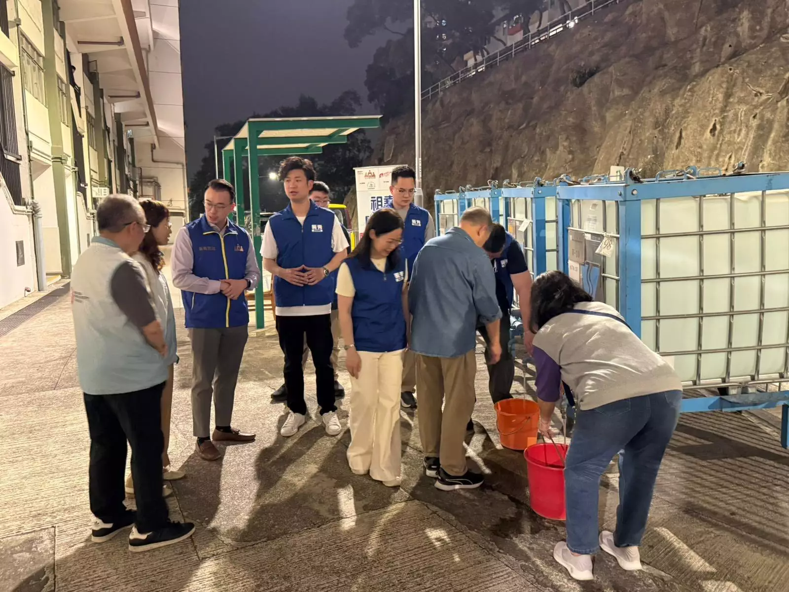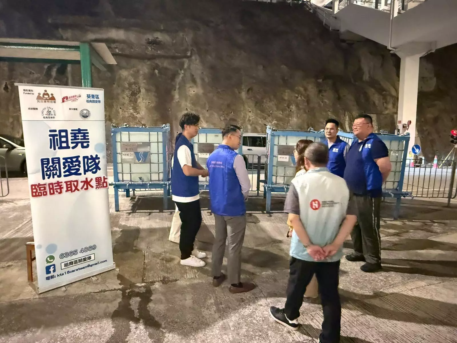葵青民政處同時安排祖堯關愛隊通知居民喺停水前儲備足夠食水,葵青區議員同關愛隊亦一直喺現場戒備,協助有需要居民。