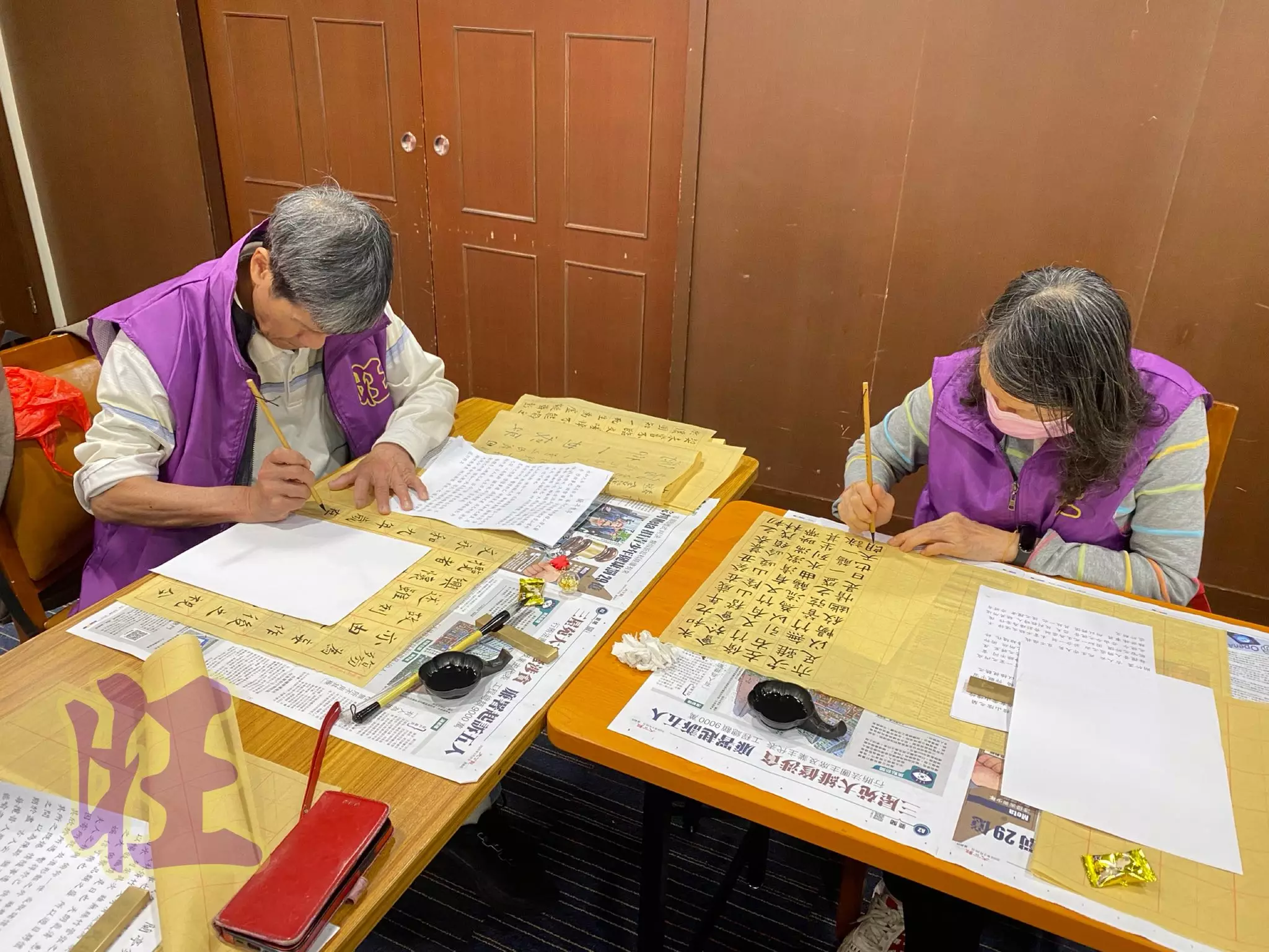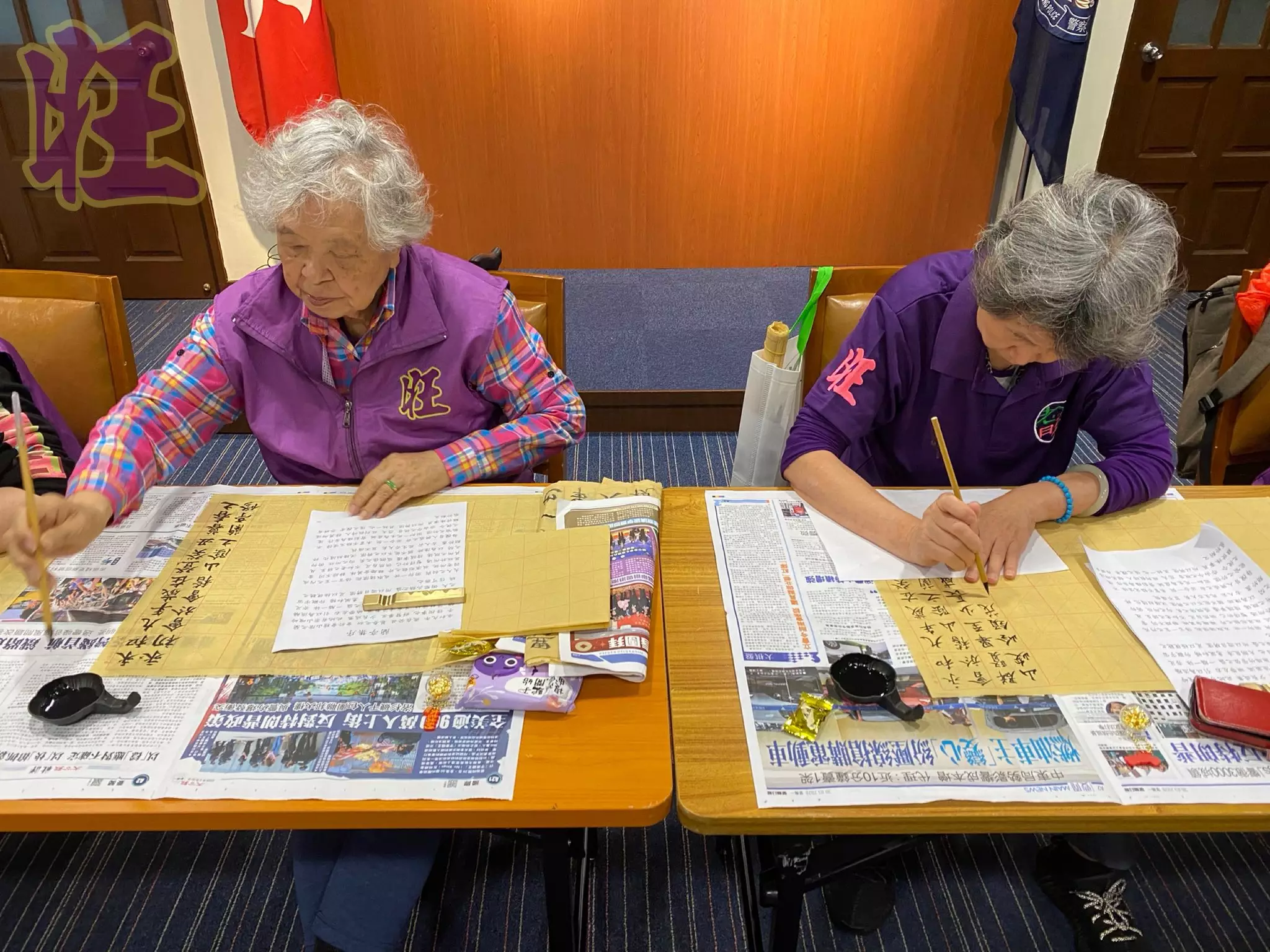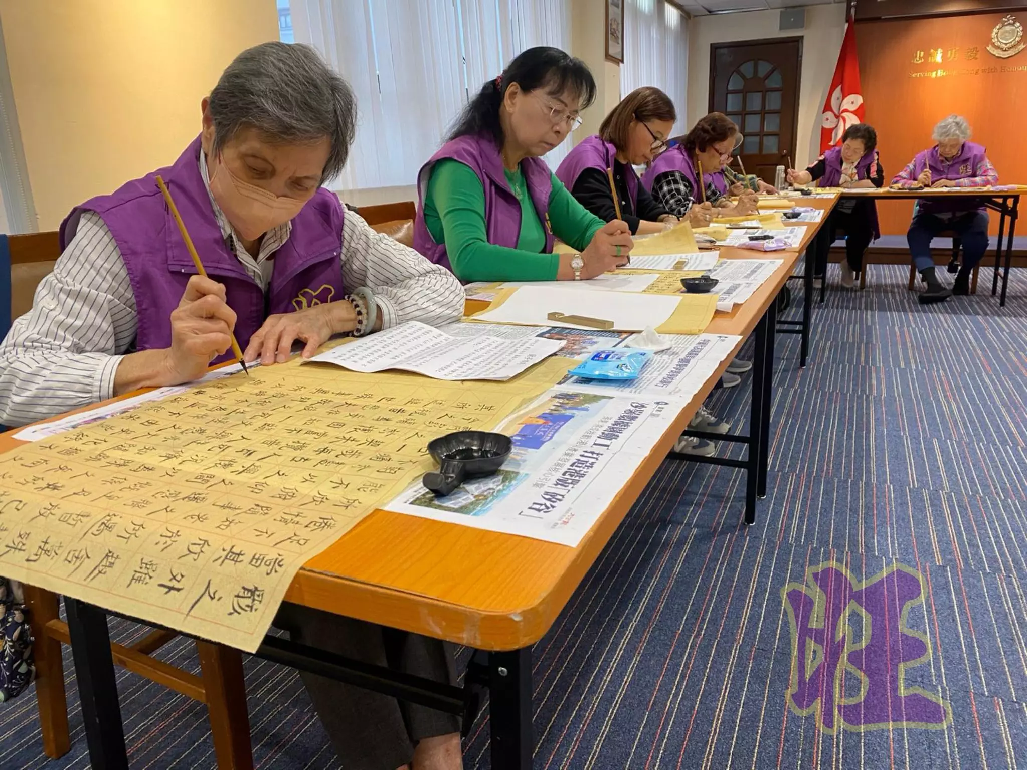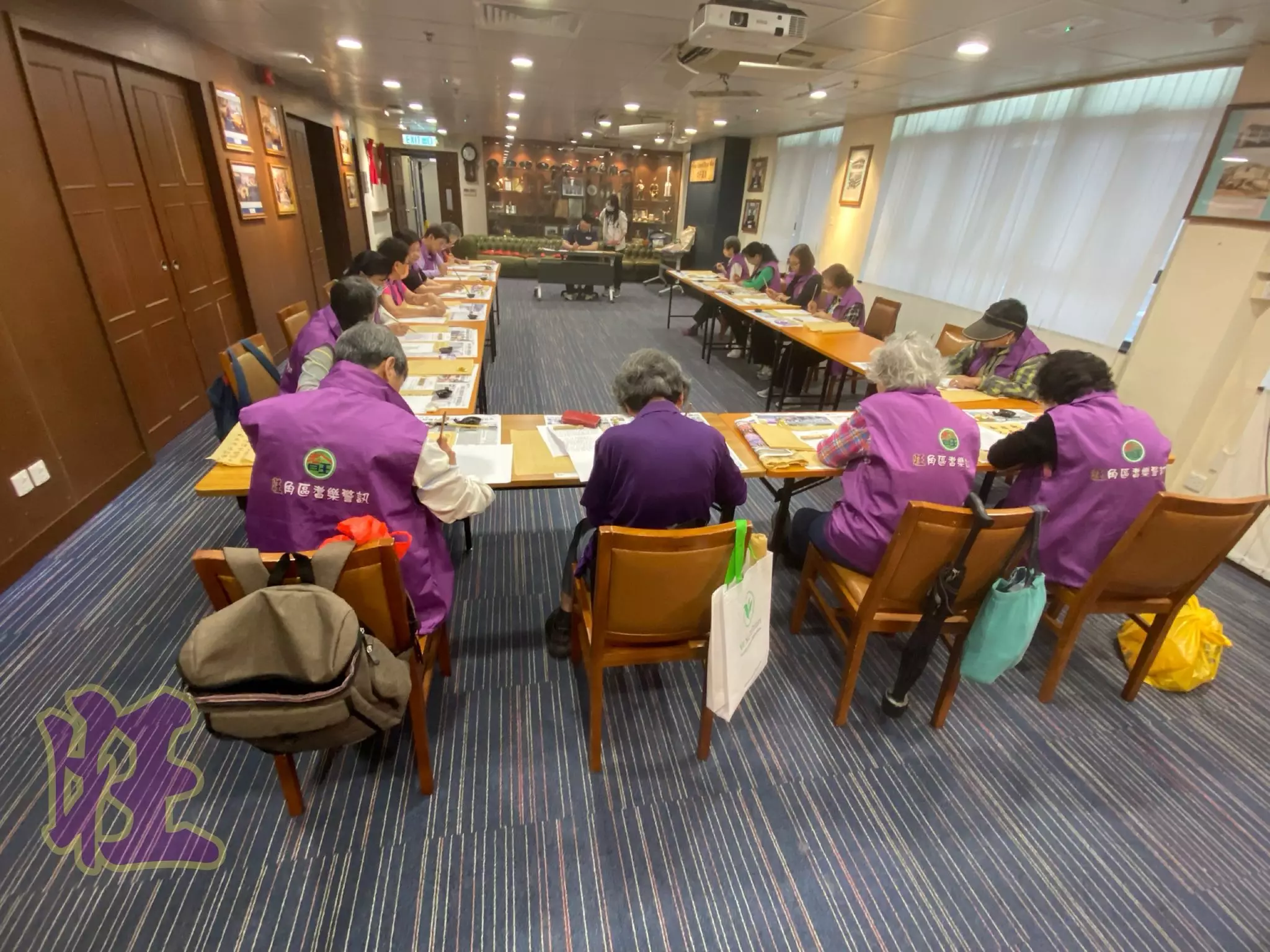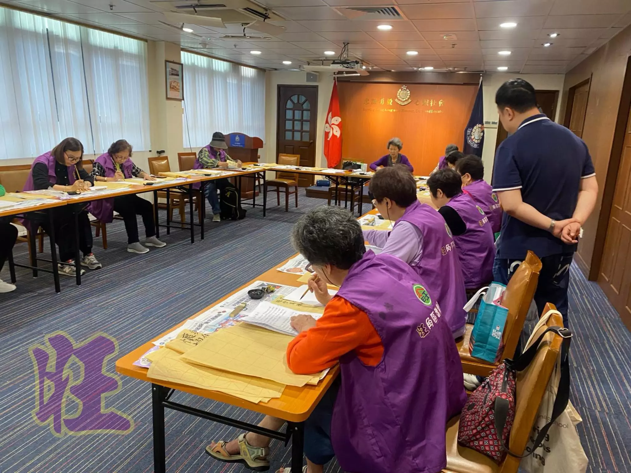 前日(4月2日),唐Sir再度開班傳授書法,18位旺角區耆樂老友記執筆復刻書聖王羲之的《蘭亭序》。