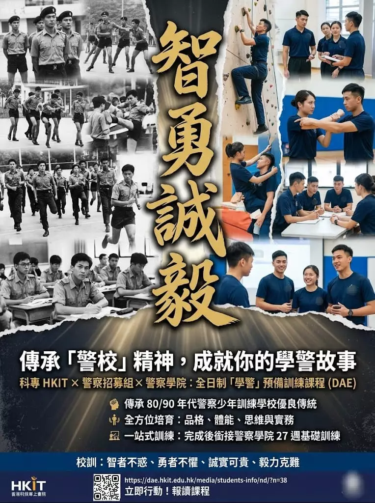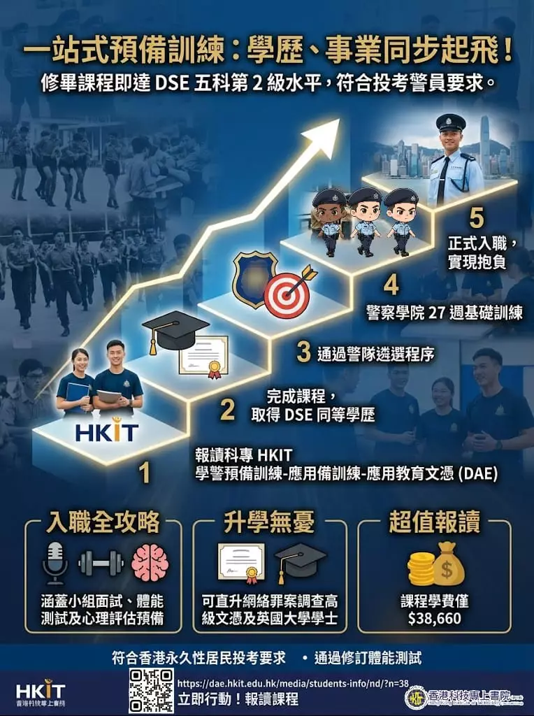 歡迎大家報讀由 #香港科技專上書院(科專HKIT)與「 #警察招募組 」及「 #警察學院 」攜手開辦全新的「#學警預備訓練」課程