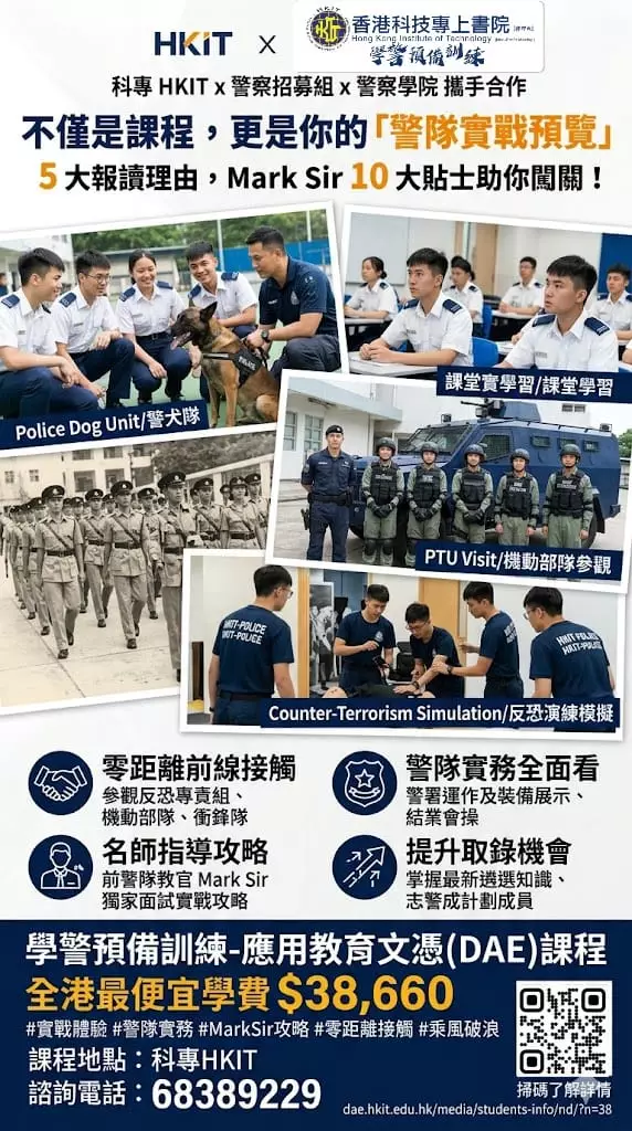 警察招募 |〈同學必定要選讀:科專(HKIT):#學警預備訓練課程〉