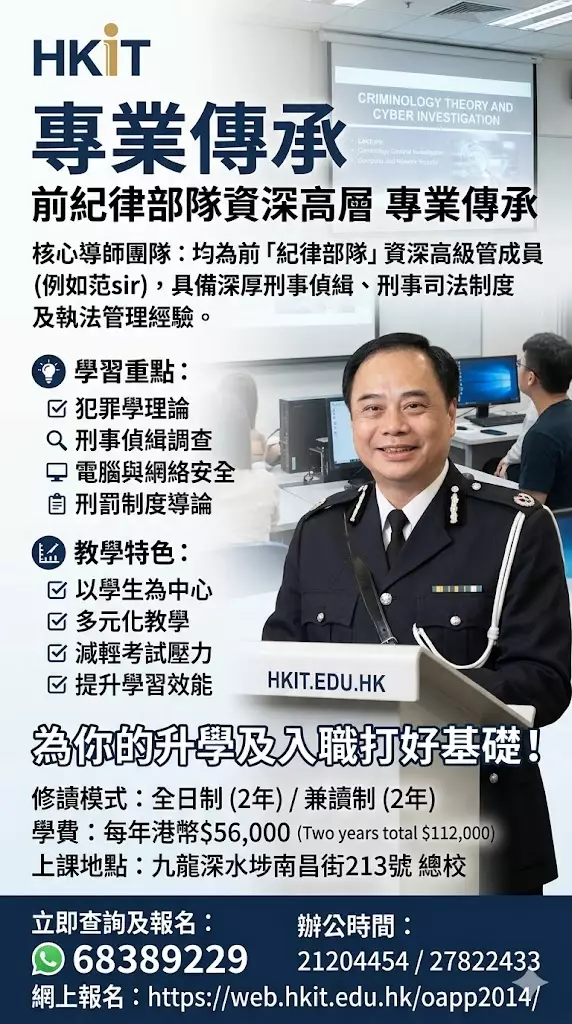 讓你全面學習 #犯罪學理論、#刑事偵緝調查、#電腦與網絡安全的運作及刑事司法制度等知識。