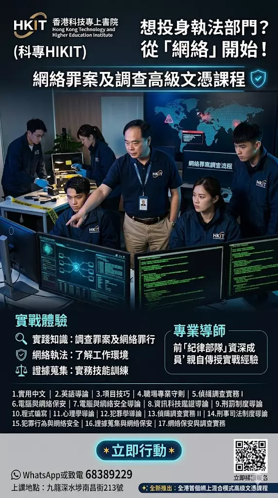 #香港科技專上書院( #科專HKIT ) │#網絡罪案及調查高級文憑課程