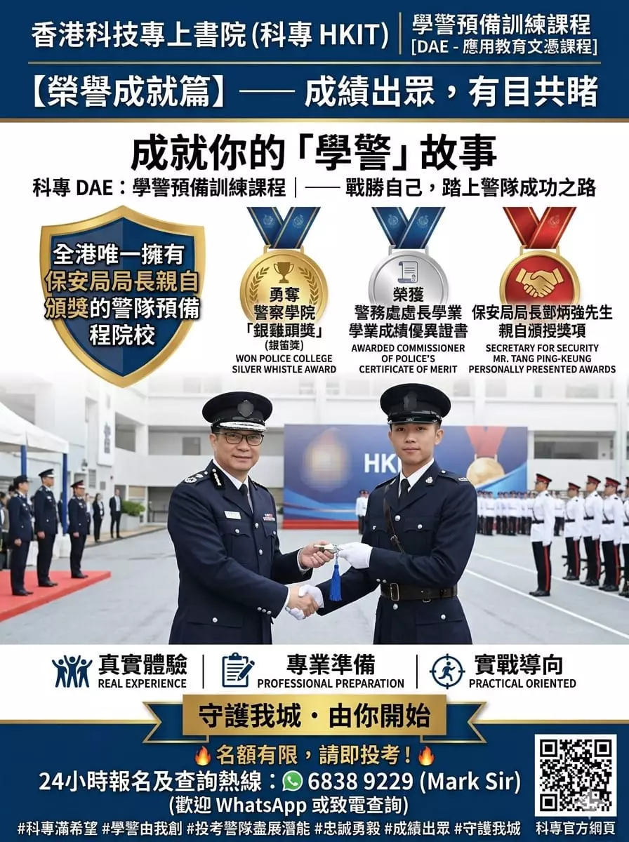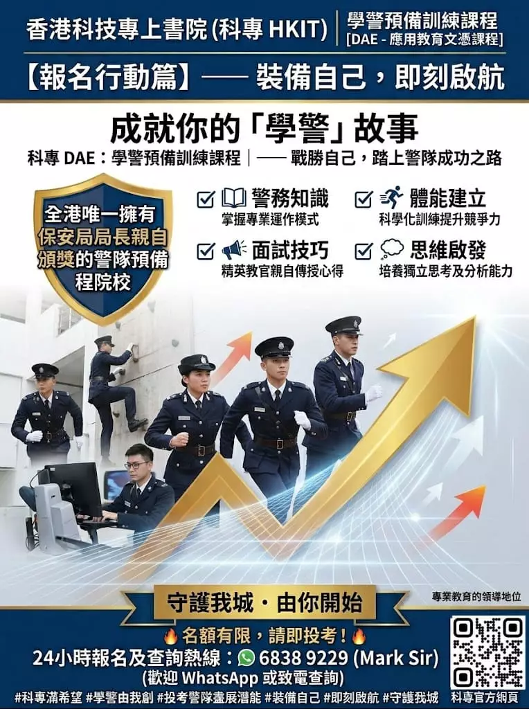 歡迎大家報讀由 #香港科技專上書院(科專HKIT)與「 #警察招募組 」及「 #警察學院 」攜手開辦全新的「#學警預備訓練」課程