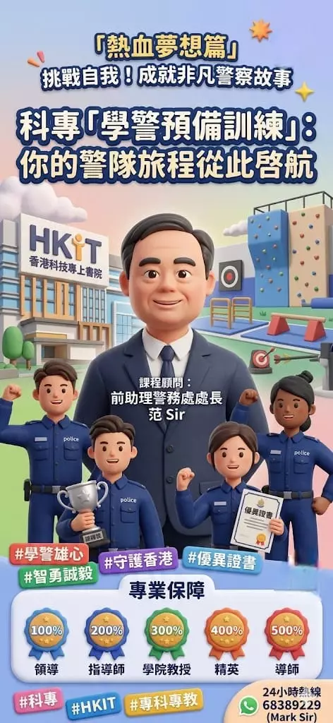 歡迎大家報讀由 #香港科技專上書院(科專HKIT)與「 #警察招募組 」及「 #警察學院 」攜手開辦全新的「#學警預備訓練」課程