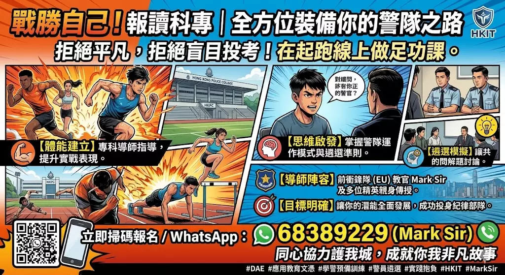 #學警預備訓練 #應用教育文憑課程 #DAE #學警 #學警訓練 #學警課程 #學警雄心 #學警故事 #學警系列 #學警生活 #學警訓練科 #學警體能 #香港警隊實務 #警隊入職準備 #體能建立及思維啓發#智勇誠毅 #警察少年訓練學校 #警察學院 #基礎訓練學校 #警察招募 #警察招募組 #警隊學長計劃 #PMP #投身警隊 #投考警隊 #投考警隊資訊 #加入警隊 #香港警隊 #香港警察 #香港警務處 #警察 #警員 #警務人員 #警察故事 #警務工作 #香港科技專上書院 #香港科技專上書院應用教育文憑課程 #科專 #HKIT #警隊實務課程 #忠誠勇毅 #心繫社會 #守護香港 #守護我城 #守城 #專科專教 #請即投考 #實踐抱負 #實踐理想 #HongKongPolice #MarkSir #PoliceCadetSchool #PoliceCadetTraining #紀律部隊 #紀律部隊課程 #紀律部隊課程系列