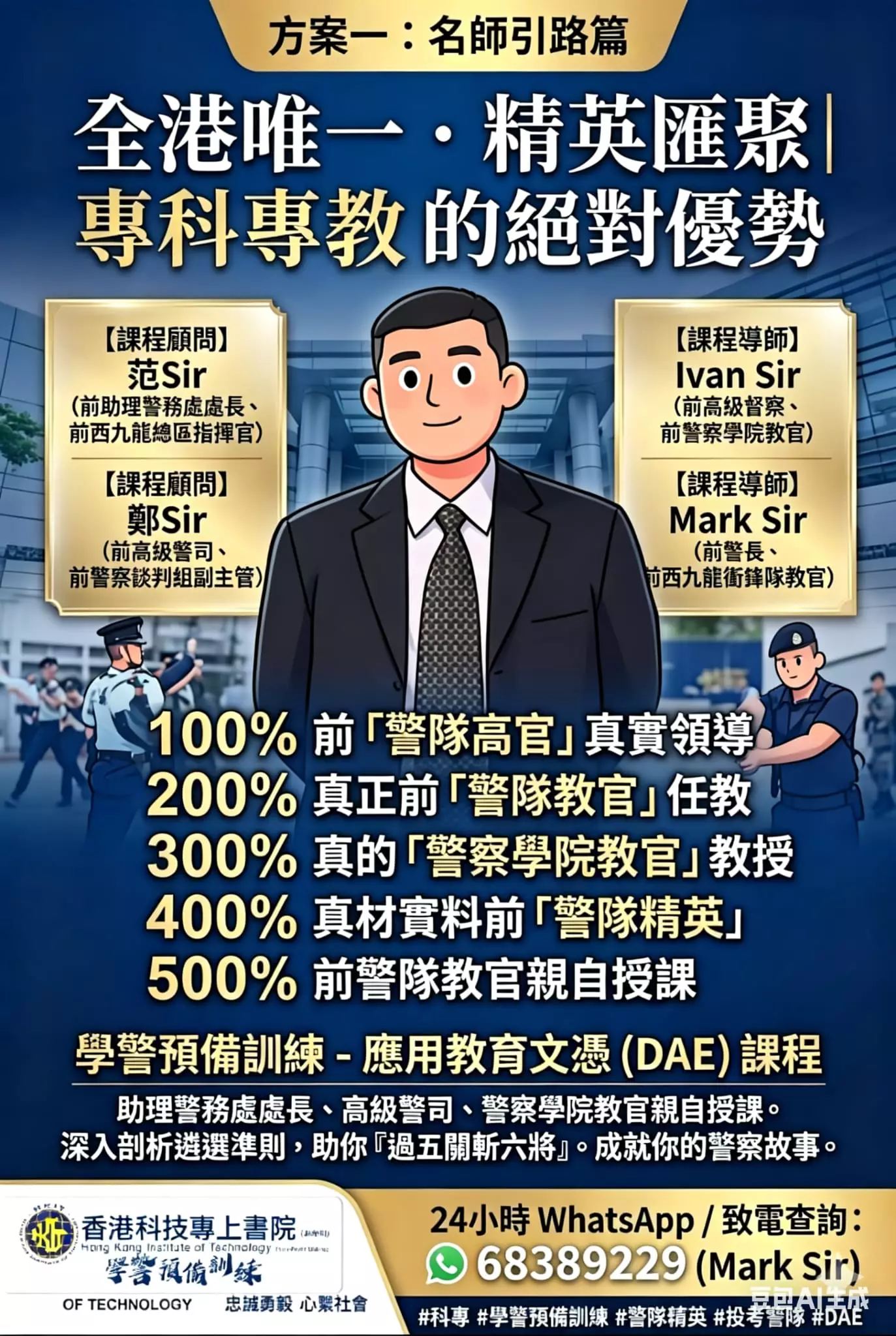 科專:由多位前「警隊高級長官及資深教官 | 擔任「學警」課程顧問及導師」| 實力「雄厚」| 絕對值得信賴