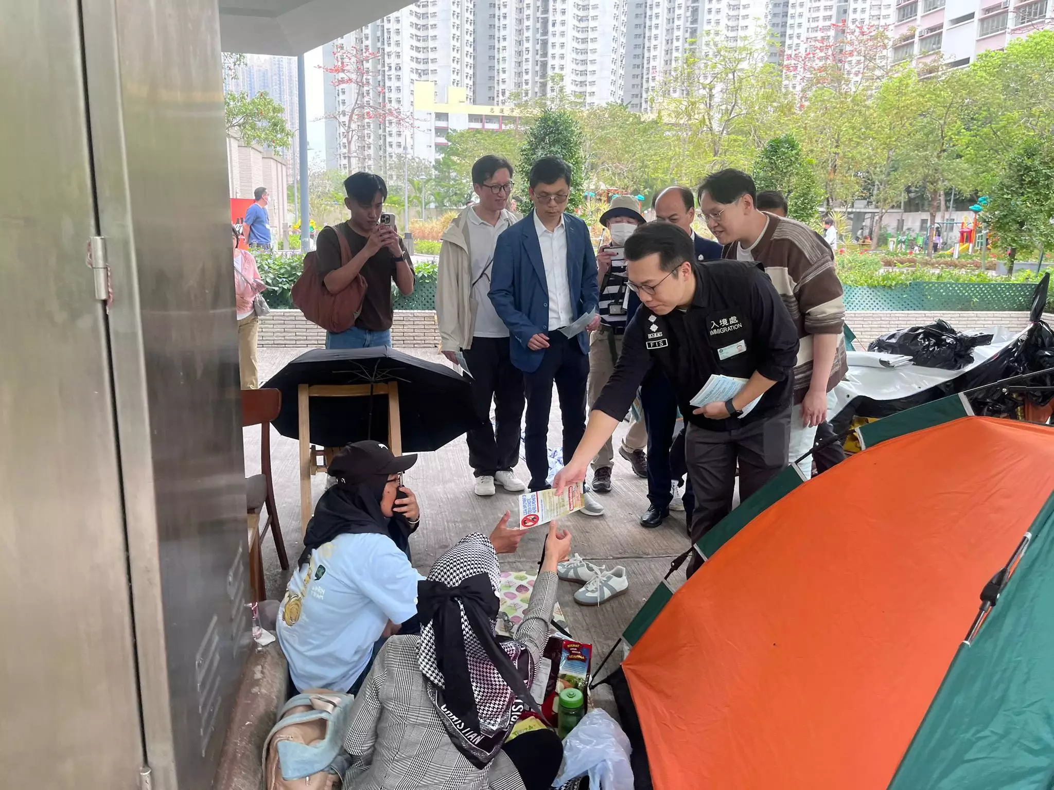 復活節假期期間,將軍澳南唐明街公園一帶再度出現外傭遺漏帳篷的情況,引起區內居民對衛生及治安的顧慮。西貢區多位區議員及多個政府部門,舉辦宣傳活動提醒外傭「自己東西自己帶走」,呼籲在享受假期之餘亦要顧及其他居民權益,共同維護社區環境 。