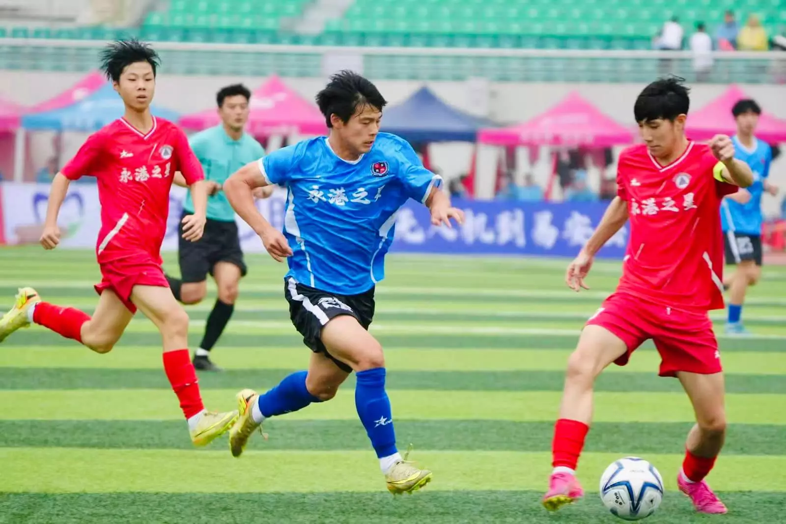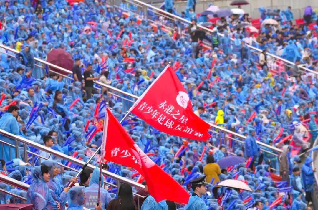 備受矚目嘅友誼賽日前(6/4)喺永州市體育場舉行。即使比賽當日細雨綿綿,仍無阻現場嘅熱烈氣氛,觀眾席座無虛席。兩隊球員奔馳於綠茵場上,汗水與笑容交織,展現青春活力與頑強鬥志,同時體現團隊合作、堅持不懈及互相尊重嘅運動精神。