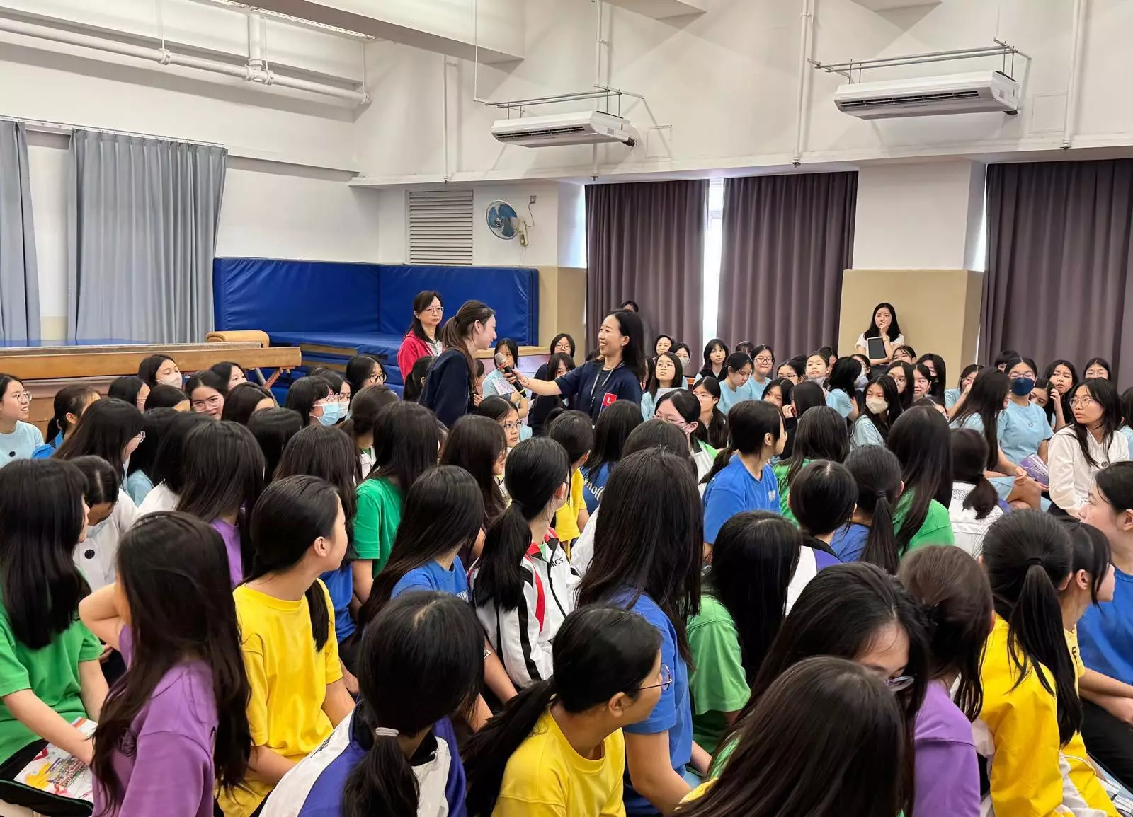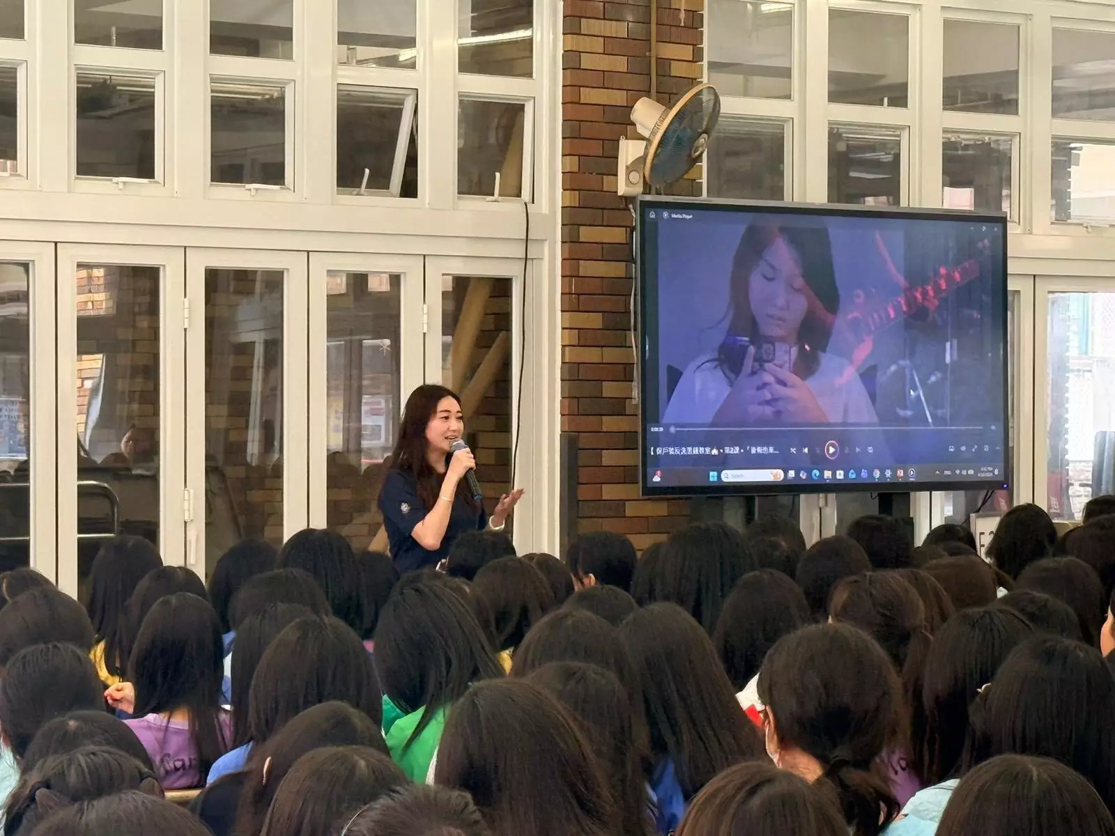 師妹們對於一衆大師姐到訪母校及派發警察紀念品都感到份外親切同興奮。師姐教導學妺們必須依法守規,並帶出「不做冷眼旁觀者」的重要信息,協力阻止及預防欺凌行為發生。亦要小心不法份子以網購及交友為名,設下各種圈套,騙取金錢或有其它不軌企圖,如有懷疑就立即向家長、老師、社工等可靠的人士求助。並且用實際例子,分享如何辨識新興毒品,重點防範危害精神藥物,帶出毒品禍害,特別是近期興起的「依托咪酯」,宣傳反吸毒訊息,避免跌入陷阱及成為匪徒既販運毒品的工具。