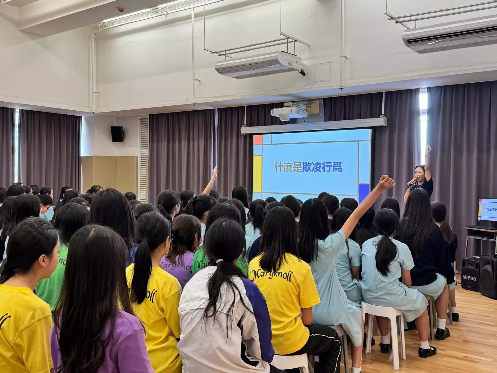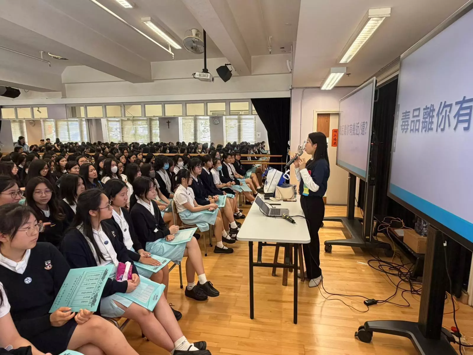 今日4月10日警務處「Project Legacy 傳承計劃」7位瑪利諾師姐警察大使聯同九龍城警區警民關係組,同全校764位師妹互動接觸,分享經驗同防罪守法意識。