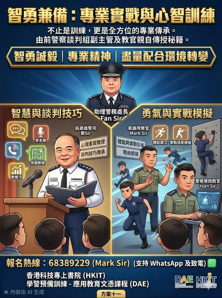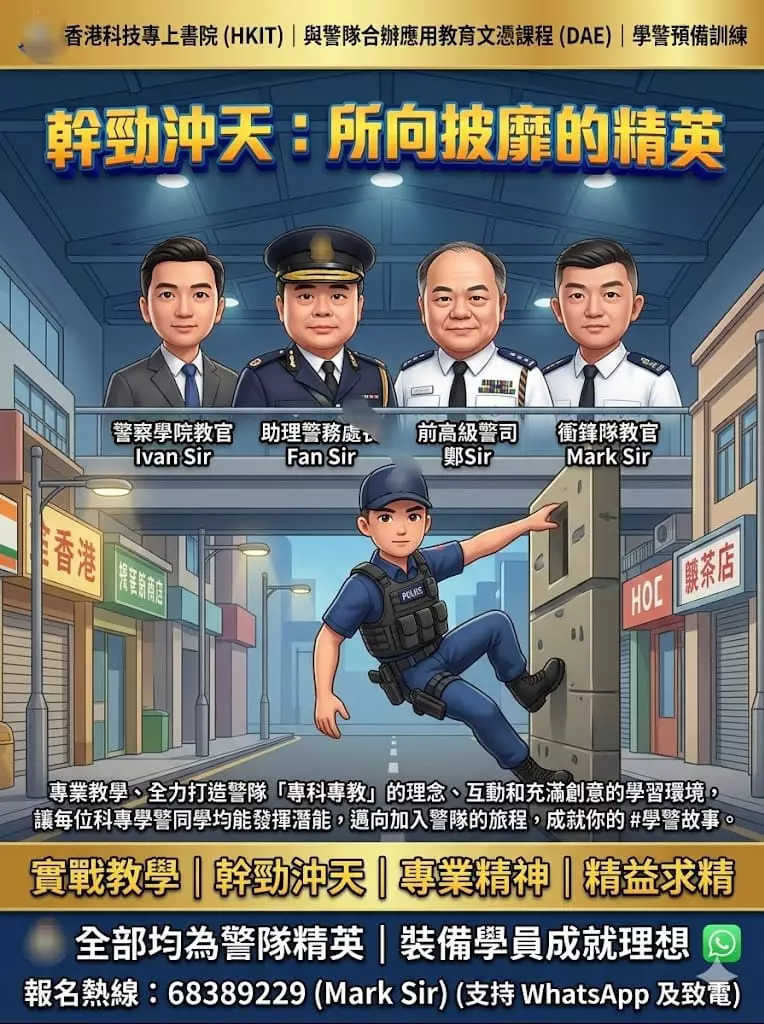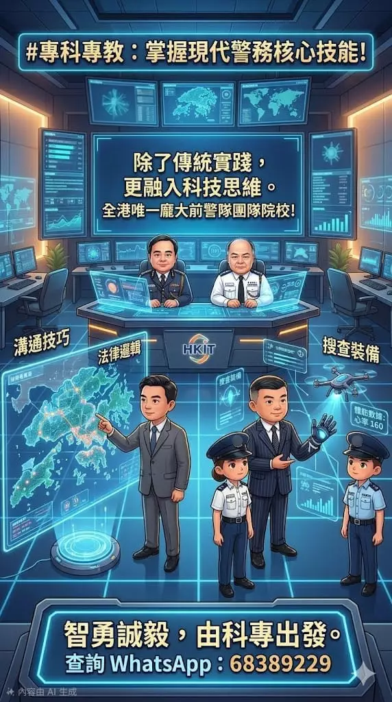 歡迎大家報讀由 #香港科技專上書院(科專HKIT)與「 #警察招募組 」及「 #警察學院 」攜手開辦全新的「#學警預備訓練」課程