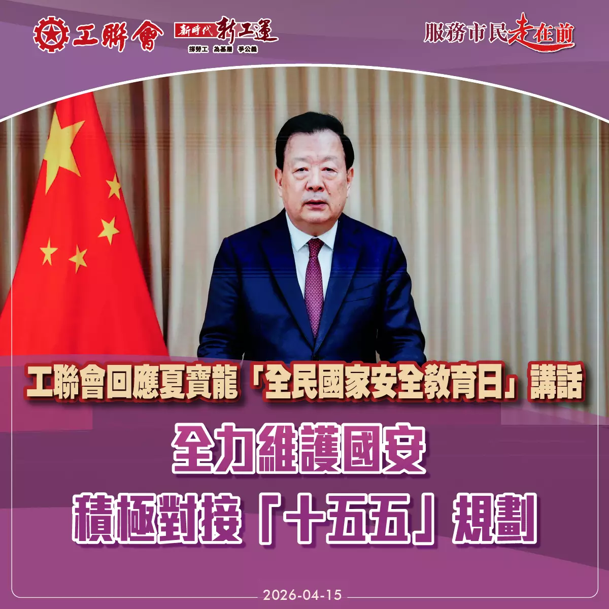 今天(4月15日)是第十一個「全民國家安全教育日」。中央港澳辦主任、國務院港澳辦主任夏寶龍在開幕典禮上作主旨致辭,題為《以高水準安全護航香港由治及興,開創「十五五」時期「一國兩制」事業新局面》。這篇致辭深刻闡釋了習近平主席關於統籌發展和安全的重要講話精神,為香港未來發展指明了前進方向。