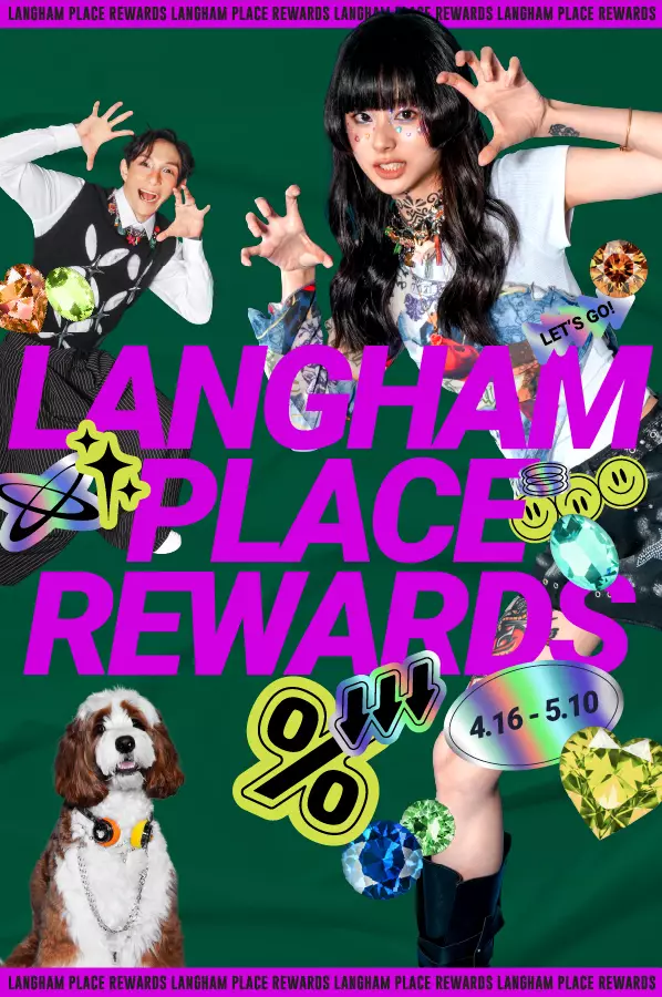 為將消費購買力極致放大,朗豪坊推出「Shopping Rewards」全場消費連環賞,於場內商戶消費累積滿HK$2,500(非食肆或非特色食品商舖),即賞HK$300電子購物券禮包(包含朗豪坊商場HK$100指定商舖電子優惠券2張及LANGHAM BEAUTY HK$100購物優惠券1張),讓你掃盡春夏心頭好。