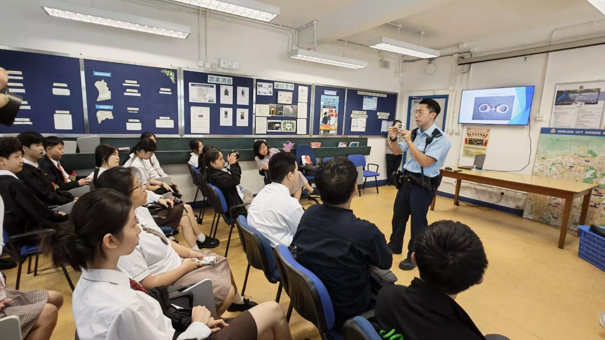 連結已複製! 今日4月15日正正係第十一個「全民國家安全教育日」,有見及此,九龍城區警民關係組在九龍城警署向超過20名賽馬會官立中學的內地生同學進行國家安全教育講座,旨在提高青少年對國家安全意識,讓青少年認識在維護國家安全的工作及成果。及後帶同一眾同學參觀九龍城警署,參觀透過親身體驗,了解警察的職責,建立守法觀念和公民責任感,並增加認識警察在國家安全上肩負起日常社會安全的職責。 九龍城警區人員先後向學生介紹了訓示室、報案室、警車以及軍裝警員的巡邏裝備。而且更有警犬隊為同學們作警犬的技巧示範。 除了令同學進一步加深對警隊的認識,亦提升同學對國家安全及遵守法紀的重要性。