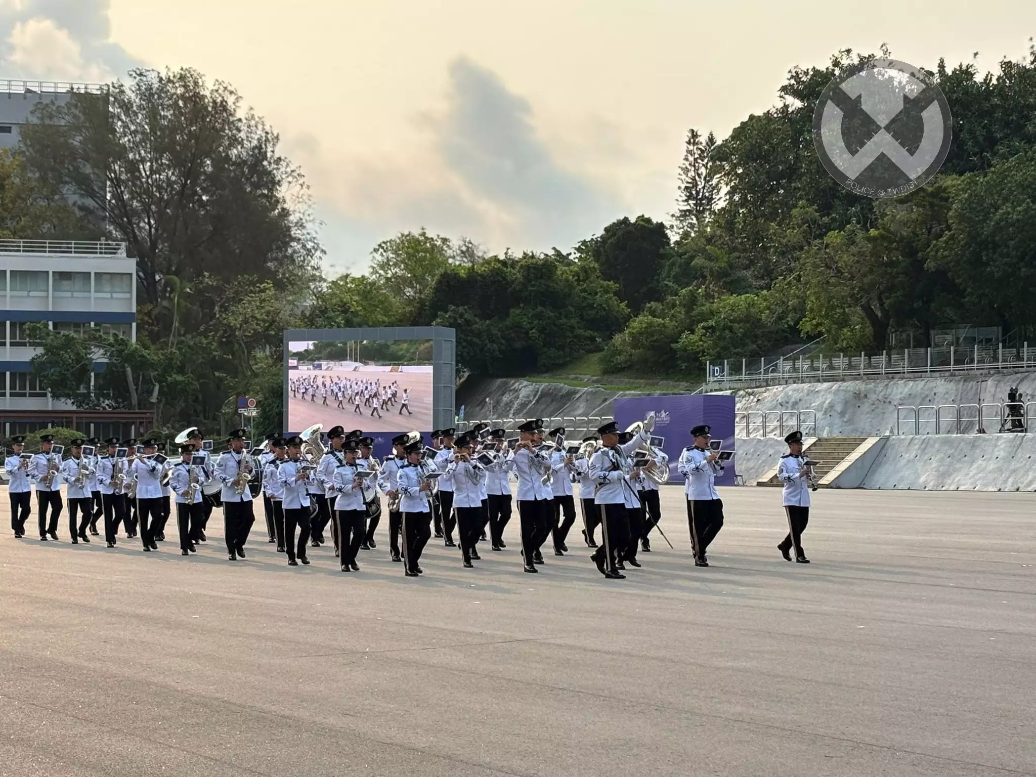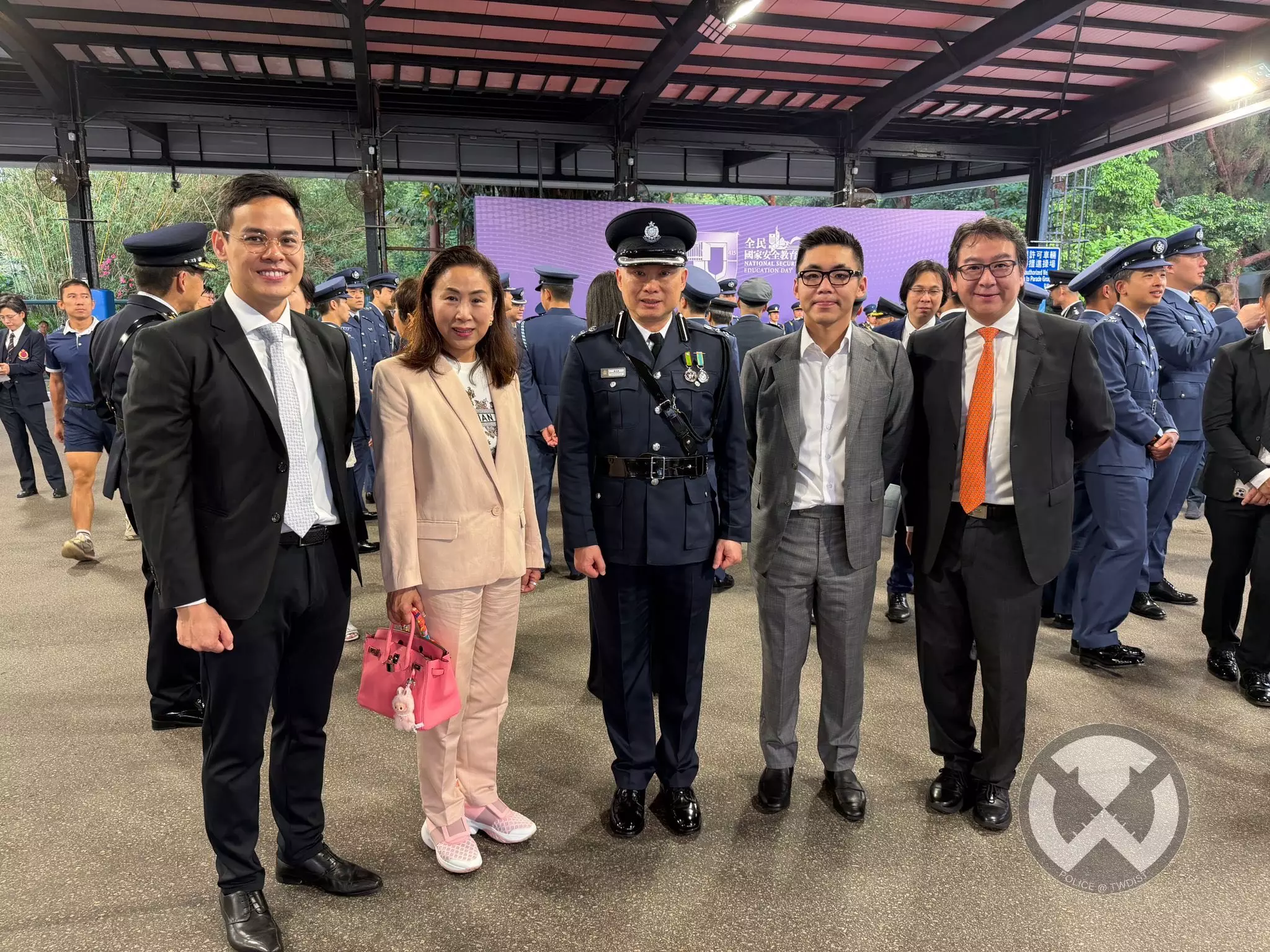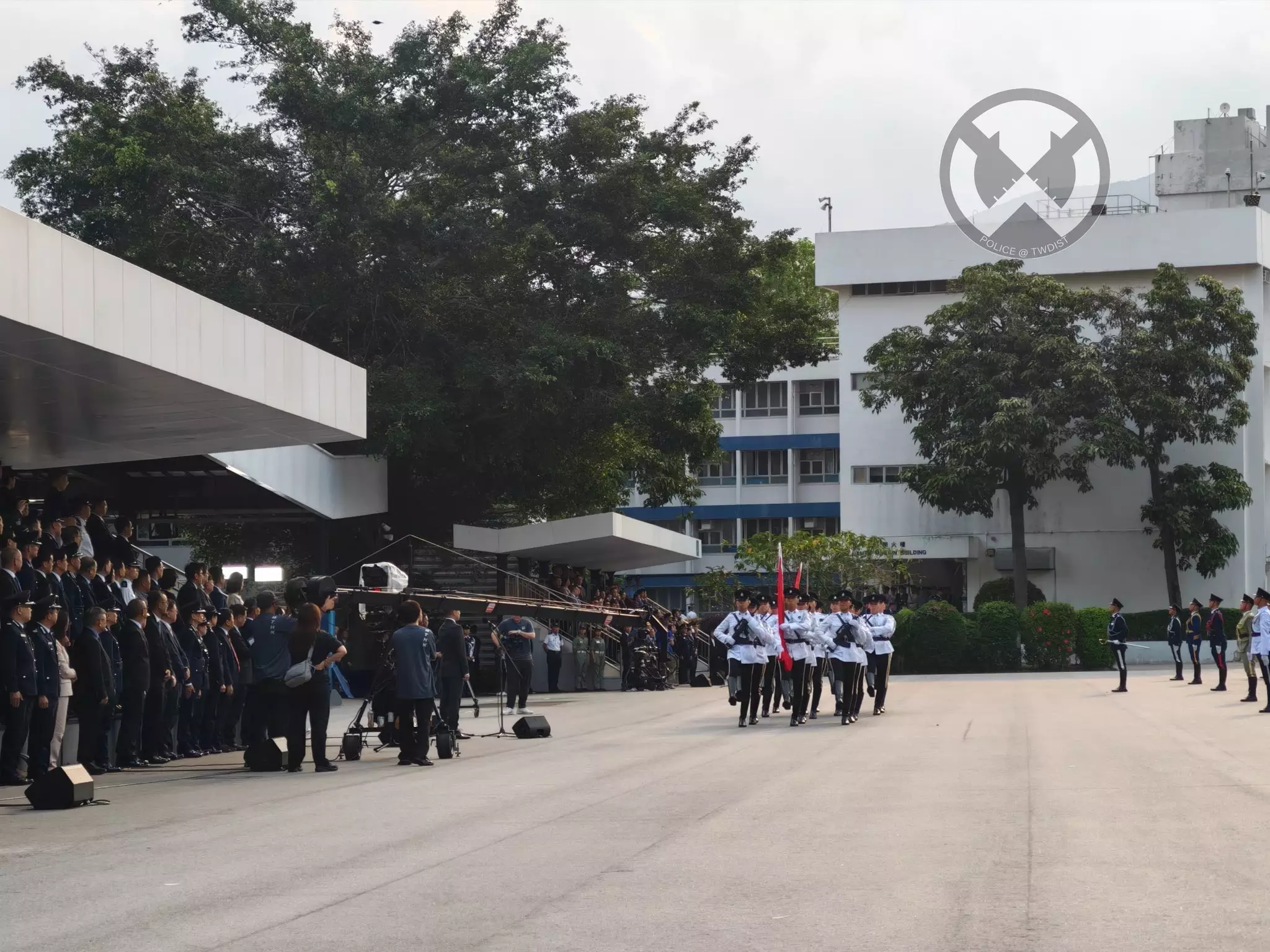 紀律部隊儀仗隊 以整齊劃一的中式步操進場,並奏唱國歌,莊嚴展示維護國家安全及 「一國兩制」 的堅定決心。荃灣警區指揮官羅家康總警司 、警民關係組陳學俊總督察 、荃灣區少年警訊名譽會長會主席嚴玉麟博士 SBS BBS JP及荃灣區耆樂警訊名譽會長會副主席嚴徐玉珊女士 MH JP,一同到場支持,共同見證這個別具意義的時刻。
