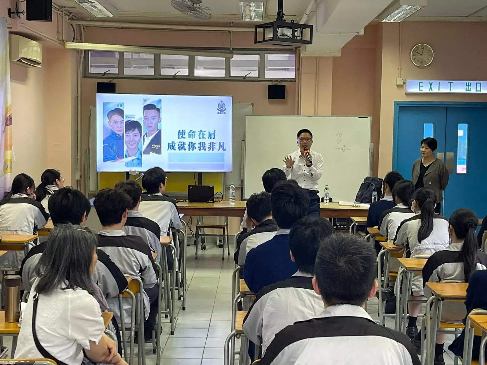 今日(2026年4月16日)油尖警區寶石計劃團隊嚟到恩平工商會李琳明中學 ,同約100位中四及中五嘅非華裔學生分享生涯規劃、寶石計劃同警隊招募資訊 ,鼓勵佢哋及早規劃未來,加入警隊服務社會 !