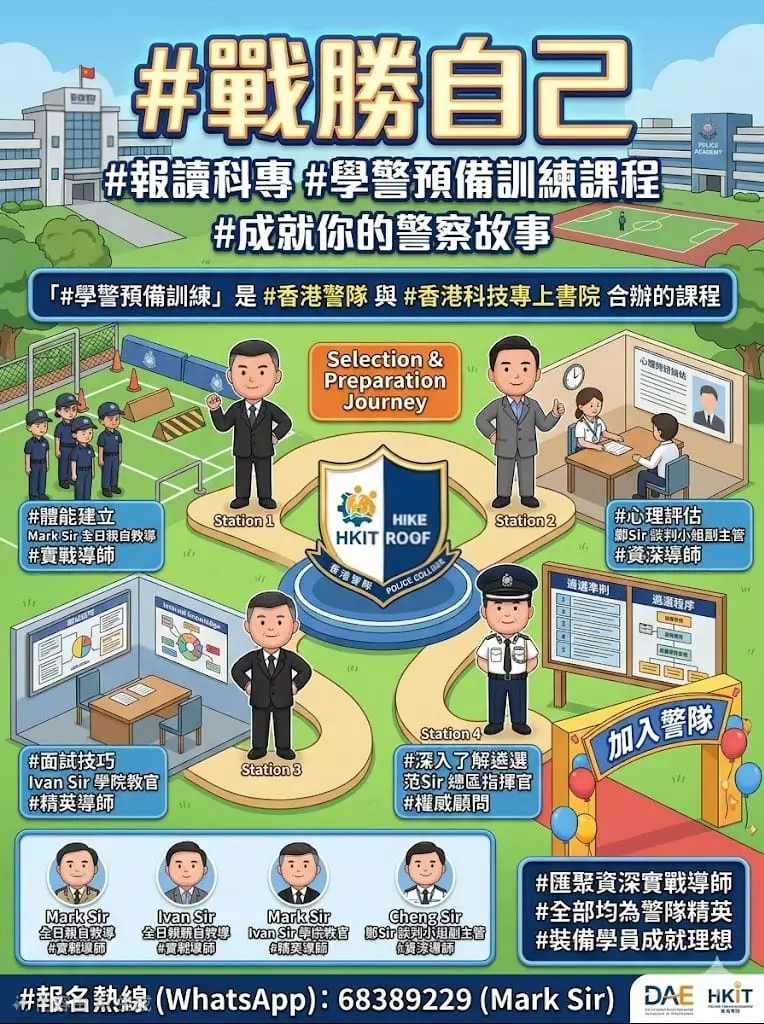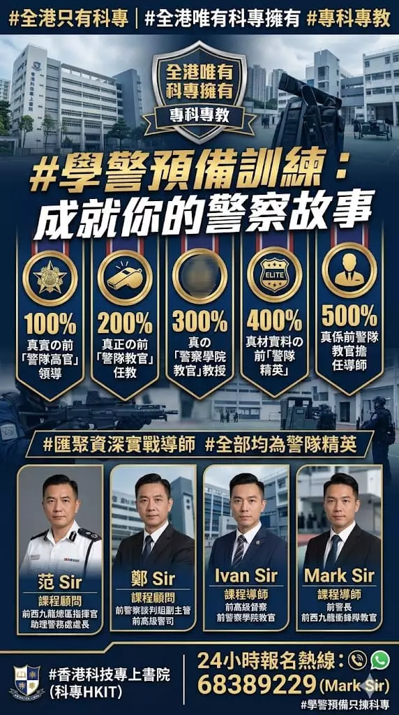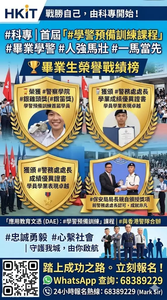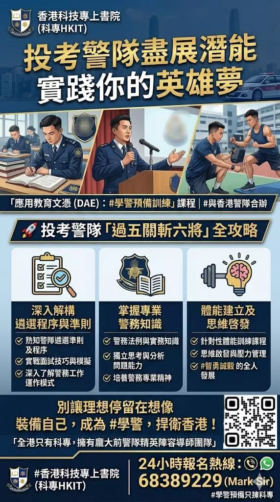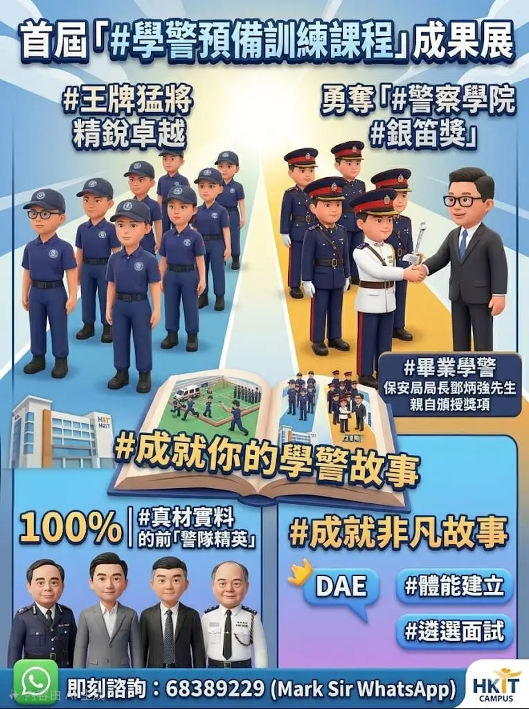 歡迎大家報讀由 #香港科技專上書院(科專HKIT)與「 #警察招募組 」及「 #警察學院 」攜手開辦全新的「#學警預備訓練」課程