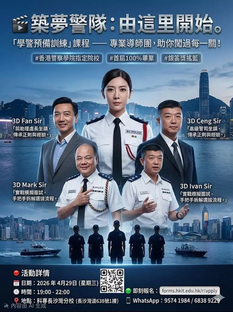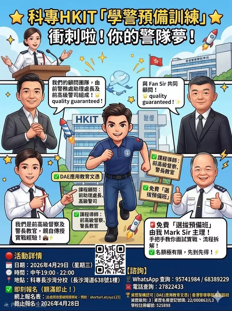 歡迎大家報讀由 #香港科技專上書院(科專HKIT)與「 #警察招募組 」及「 #警察學院 」攜手開辦全新的「#學警預備訓練」課程