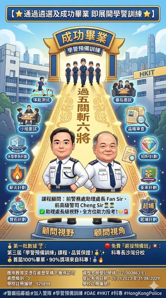 科專:由多位前「警隊高級長官及資深教官 | 擔任「學警」課程顧問及導師」| 實力「雄厚」| 絕對值得信賴