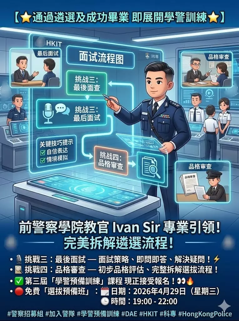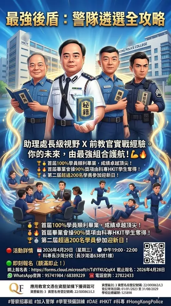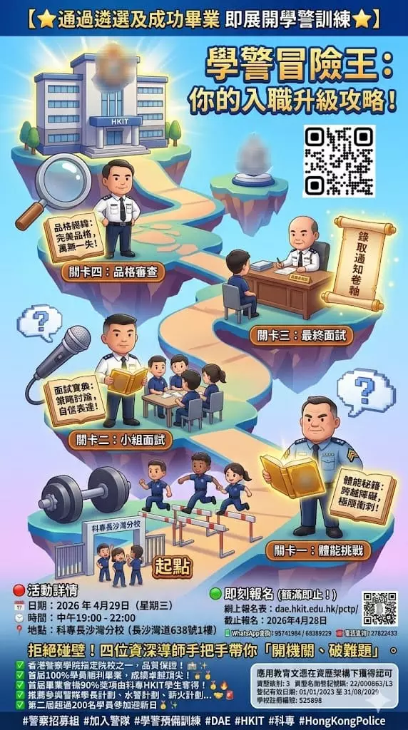 警察招募 |〈同學必定要選讀:科專(HKIT):#學警預備訓練課程〉