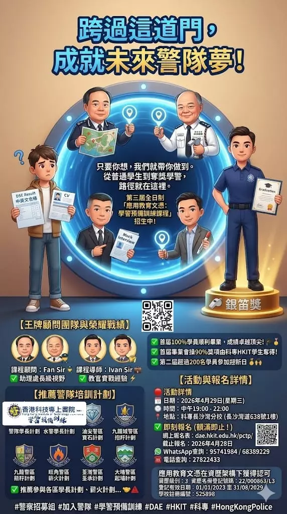 歡迎大家報讀由 #香港科技專上書院(科專HKIT)與「 #警察招募組 」及「 #警察學院 」攜手開辦全新的「#學警預備訓練」課程