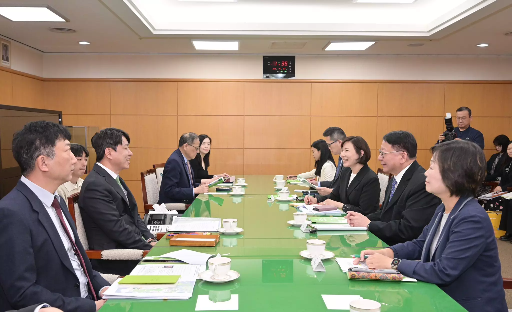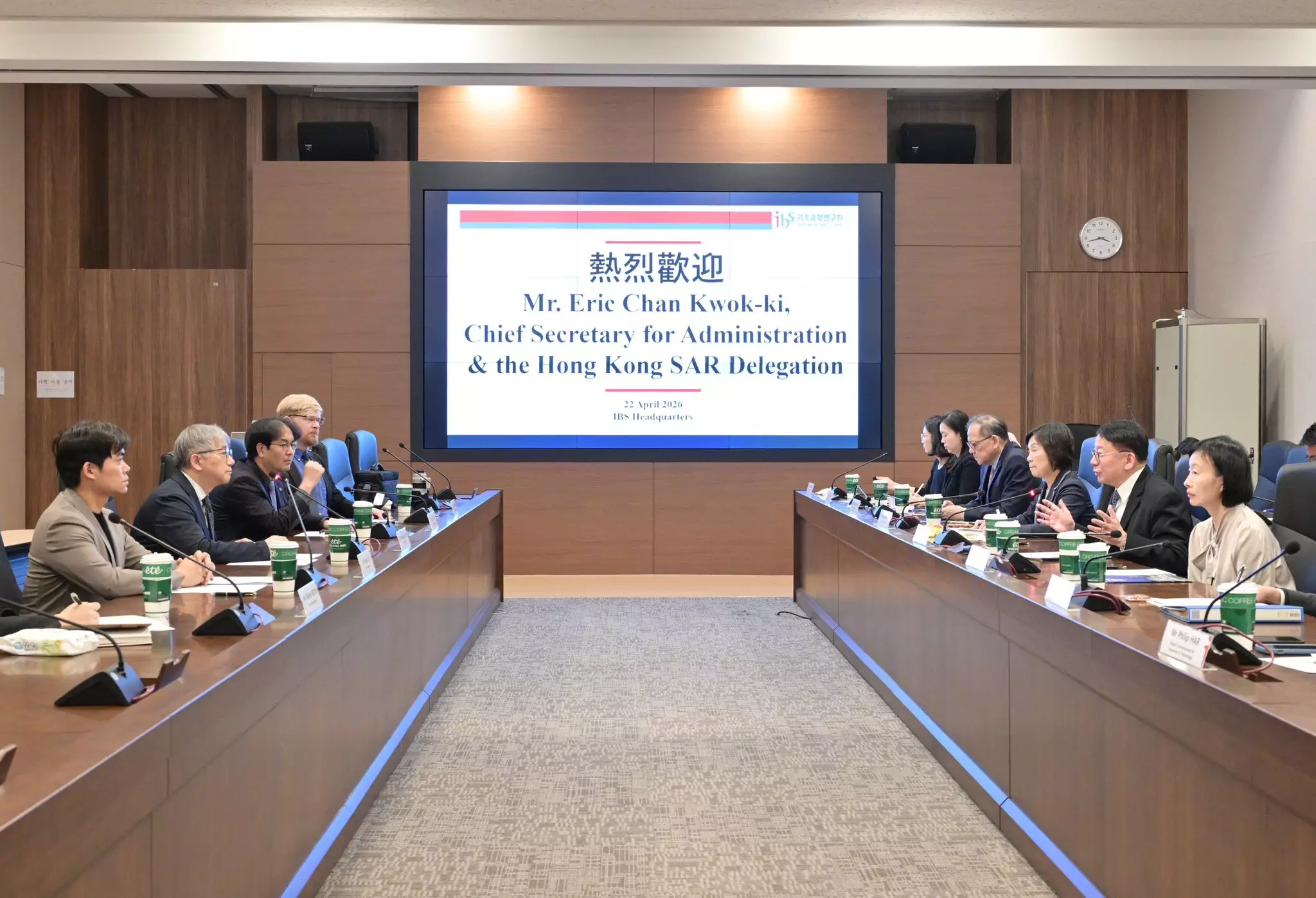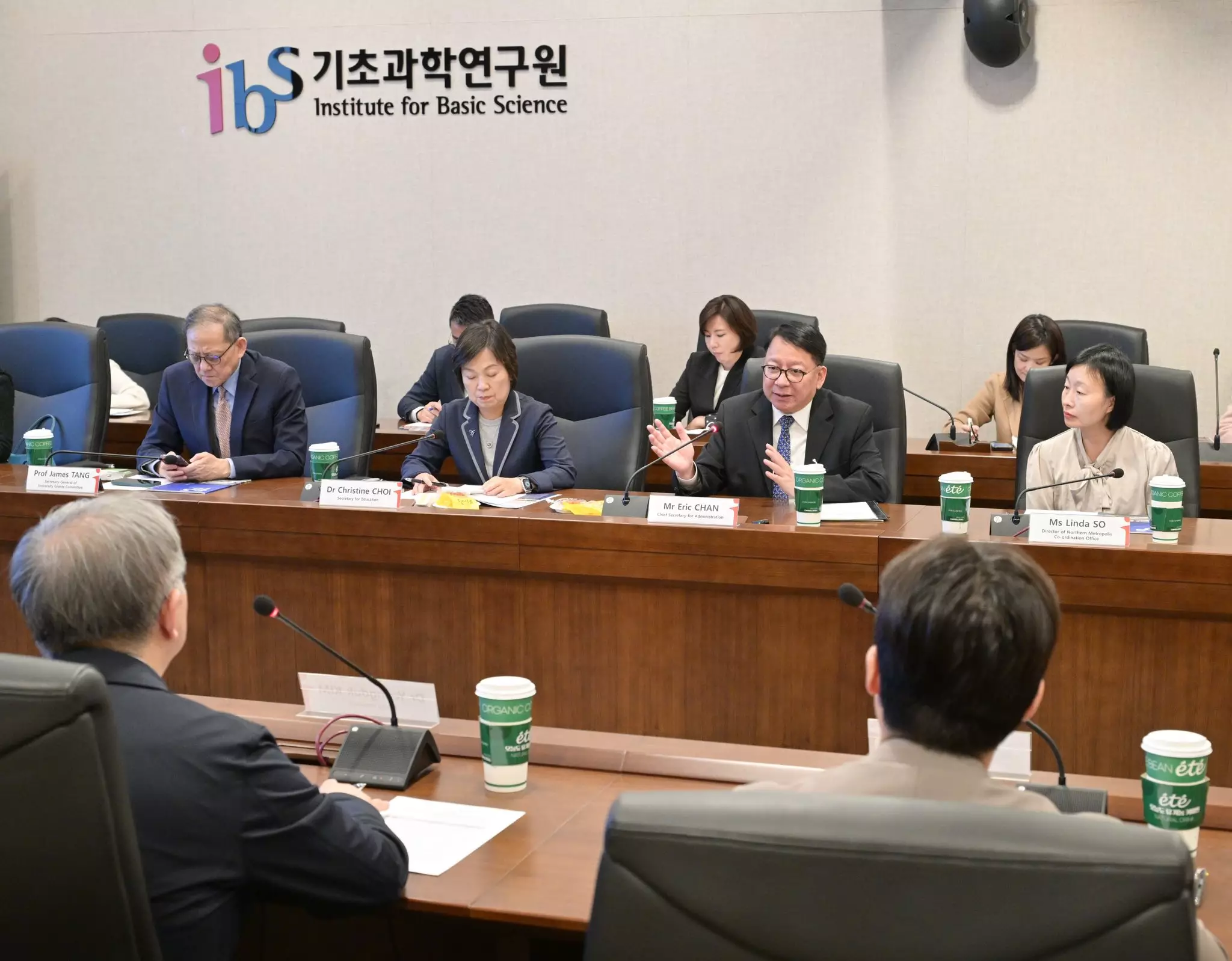 其後訪問團拜訪了大田廣域市政務經濟科學副市長崔星兒,了解當地政府鼓勵科研的政策和措施,並到訪位於大德研究開發特區的基礎科學研究院(IBS)。IBS是由韓國政府資助的頂尖科研機構,專注於物理、化學、生命科學、數學及跨學科等基礎科學研究,陳國基認為日後的北都大學城可積極與IBS這類頂尖基礎科研機構建立合作關係,推動聯合研究。