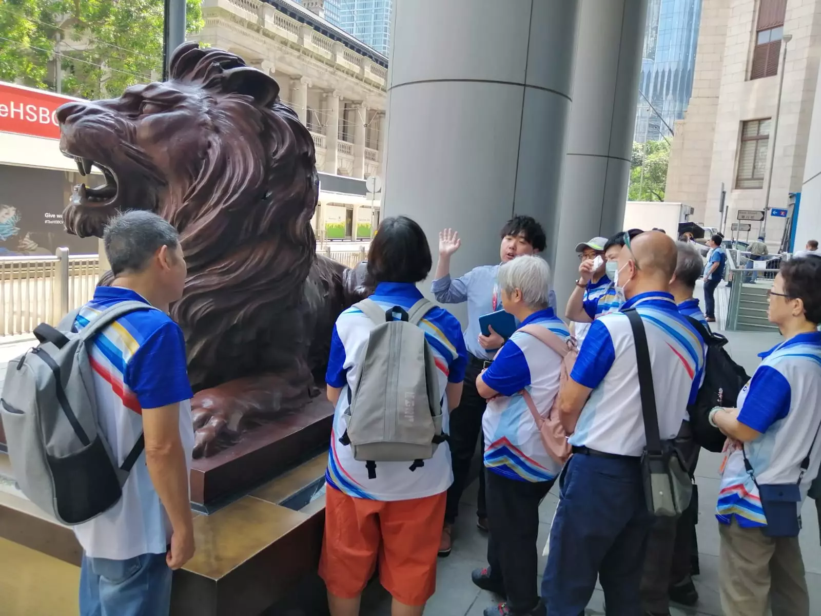 銀行職員帶領老友記參觀匯豐總行嘅部份樓層,沿途介紹匯豐銀行嘅歷史,變遷、四代匯豐總行大厦嘅建築風格同埋特色,當然仲有門口兩隻雄性獅子嘅故事同埋冷知識啦!