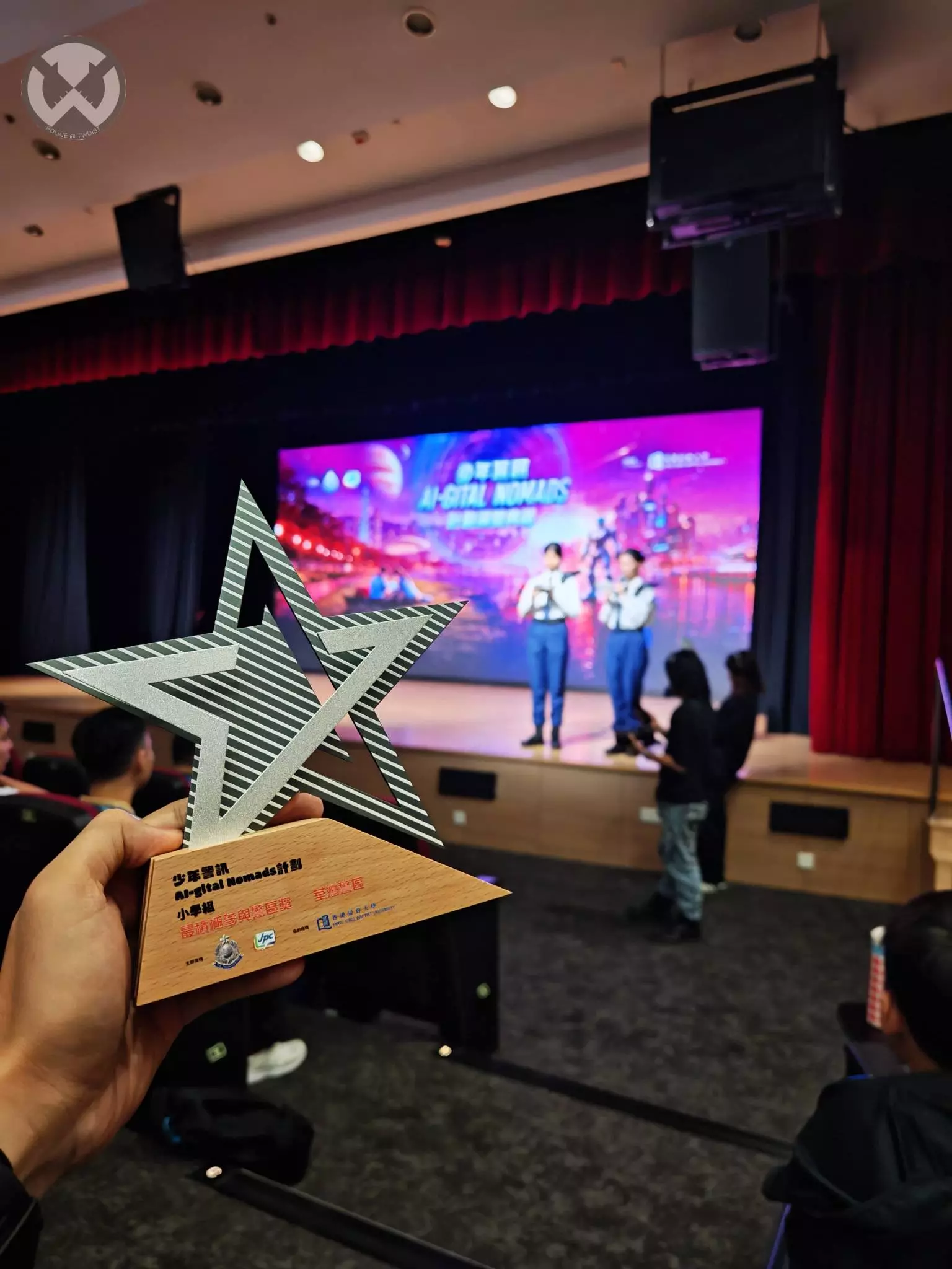 頒獎禮今日於香港浸會大學曾陳式如會堂盛大舉行,大會好榮幸邀請到行動處處長呂錦豪先生擔任頒獎嘉賓。為咗全力支持同肯定一班荃灣區少訊嘅努力,將帥同心,一齊見證榮耀時刻,荃灣警區嘅重量級代表亦親自上台領受這份殊榮,包括新界南總區指揮官張惠華助理處長、荃灣警區指揮官羅家康總警司、荃灣警民關係主任陳學俊總督察及荃灣區少年警訊名譽會長會委員王小華先生。最令人感動嘅係,今日有9位優秀嘅荃灣區少訊精英獲大會頒發一級榮譽證書,每一張證書背後,都係同學們由零開始探索 AI、課餘時間努力學習嘅最佳證明。