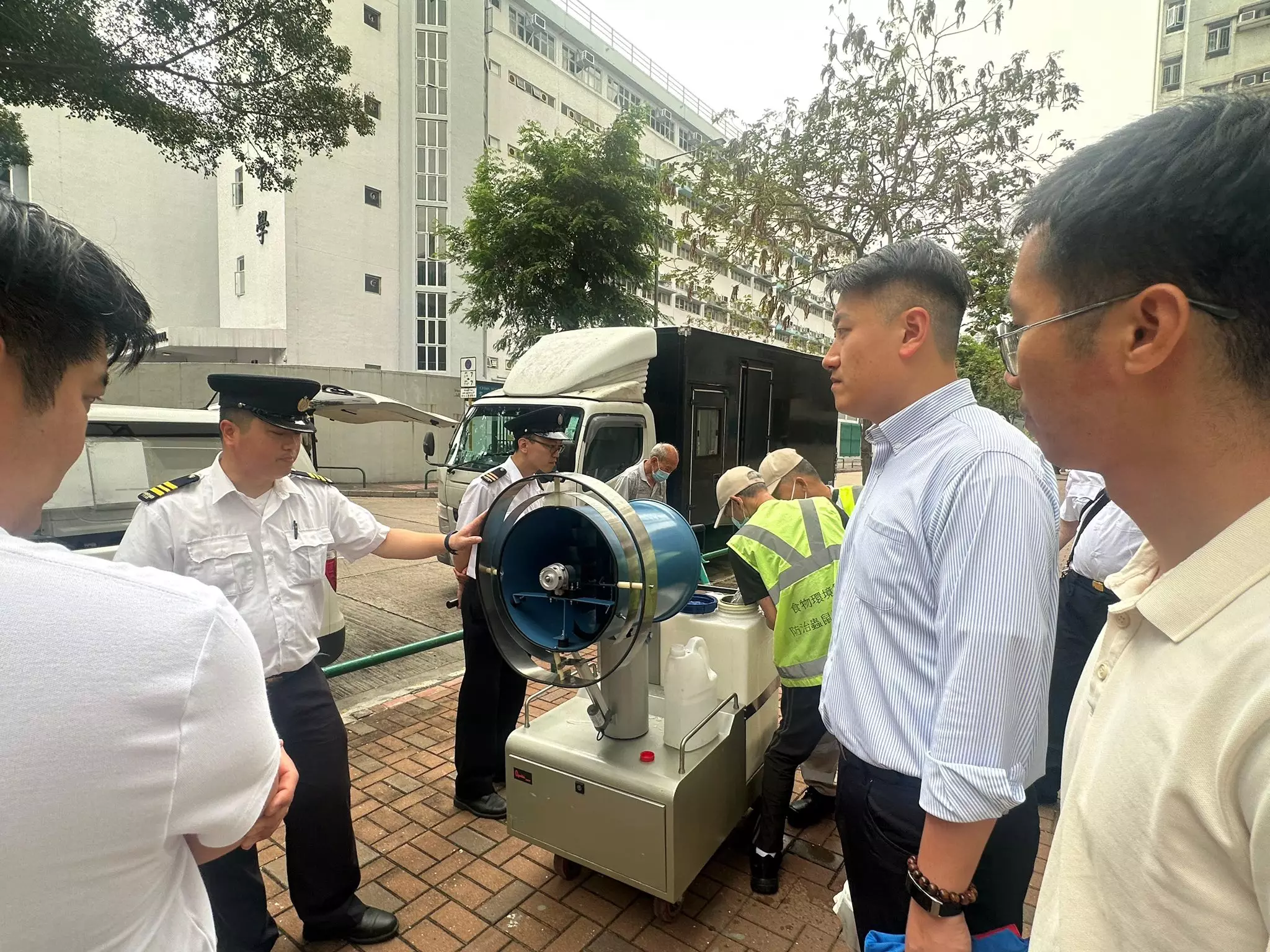 姚銘現場仔細了解霧化機操作安排及噴灑覆蓋範圍,並強調在伊蚊指數持續高企期間,部門必須主動檢視各個衛生黑點,針對積水嚴重及蚊患熱點加密噴藥次數,同時加強環境清理及巡查,從源頭清除滋生環境。