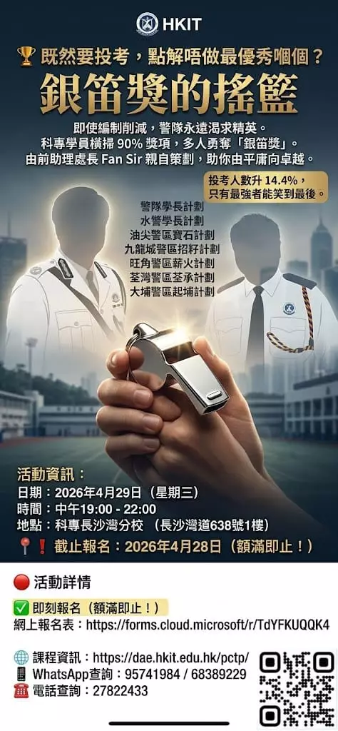 警察招募 |〈同學必定要選讀:科專(HKIT):#學警預備訓練課程〉