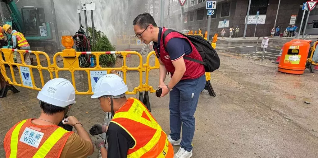 連結已複製! 早前西灣河有緊急爆水管發生,感謝水務署同事到場了解及控制水壓,噴泉式爆水管的情況已受控,初步了解是食水,但不影響周邊大廈的供水,亦感謝同事幫忙清理沙石,以免行人跣到受傷,希望減少對街坊的影響,途經興民街的街坊可能需要改道,請大家小心出入,注意安全!