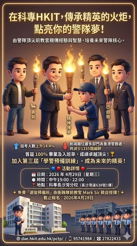 歡迎大家報讀由 #香港科技專上書院(科專HKIT)與「 #警察招募組 」及「 #警察學院 」攜手開辦全新的「#學警預備訓練」課程