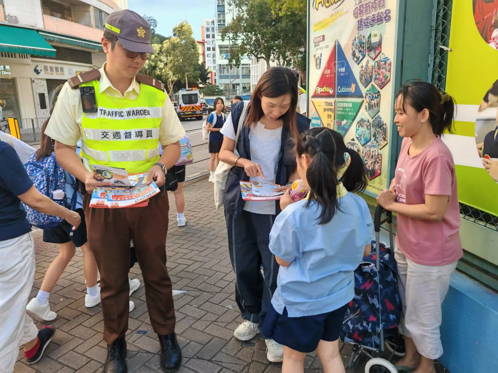 九龍城警民關係組今日(10月24日)聯同西九龍總區交通部道路安全組及九龍城警區交通隊在區內亞皆老街、富寧街一帶之學校區進行宣傳活動,向家長、學童以及學校職員宣傳有關行人安全以及過馬路注意事項,行動中共派出160張宣傳單張,希望能提高市民安全意識。 警方提醒市民過馬路時切勿看手機、不要在車輛之間的縫隙橫過馬路,以免造成危險。本區人員在將繼續監察學校區的交通狀況,以加強教育宣傳及執法行動確保區內道路暢通及各道路使用者的安全。