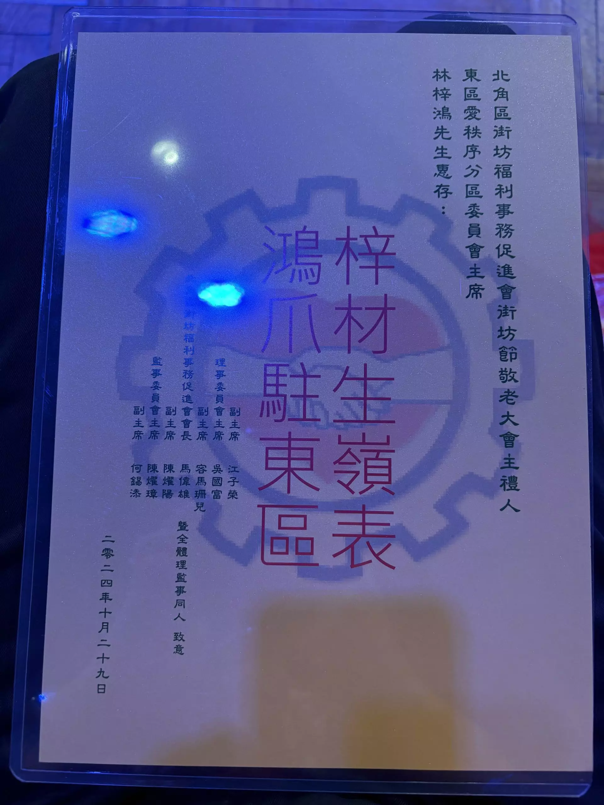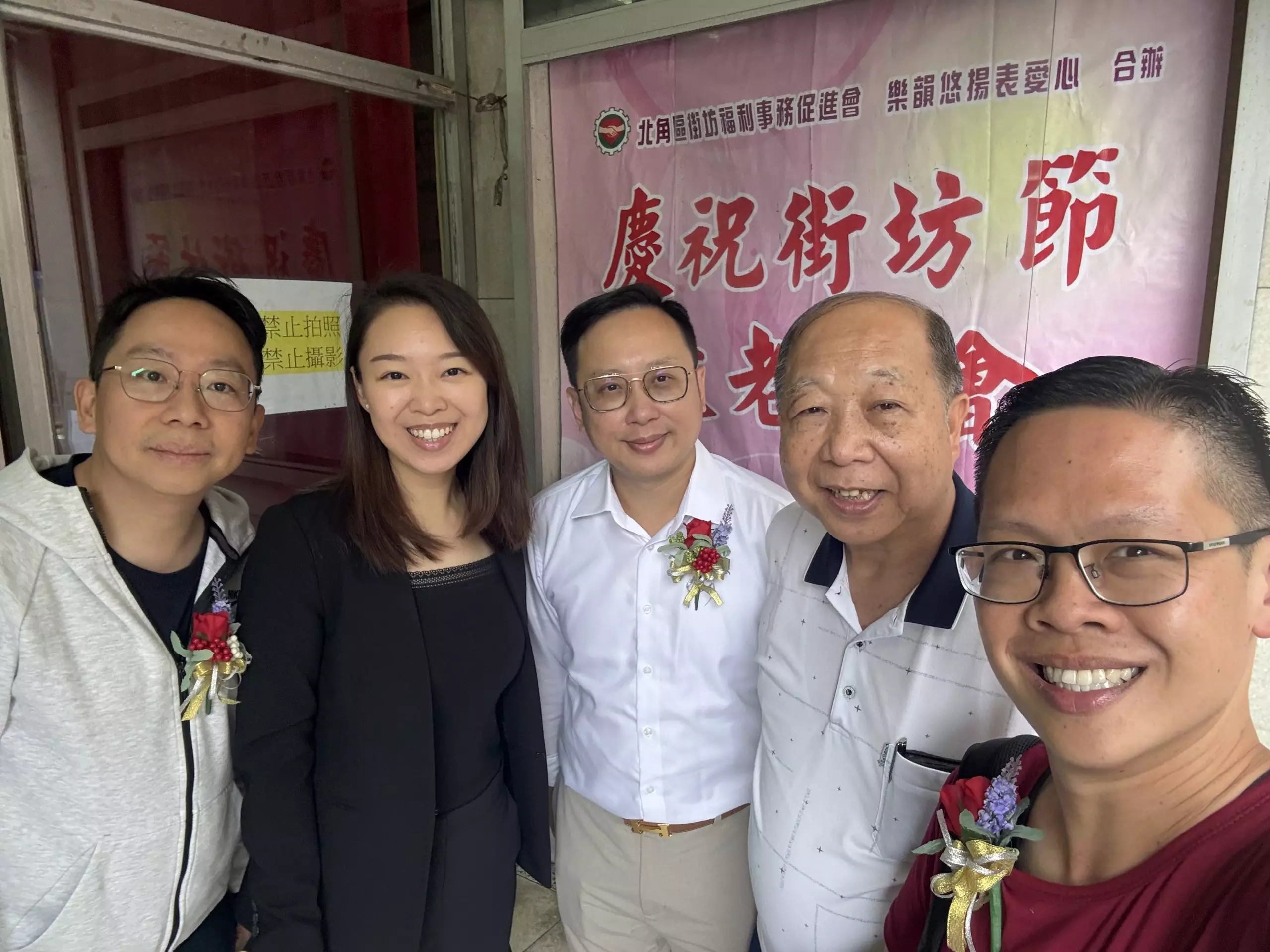 感謝北⾓區街坊福利事務促進會及樂韻悠揚表愛心邀請東區團隊,參與「慶祝街坊節敬老活動」,東區區議員劉聖雪、郭浩景、東區青年聯會主席雷有得、東區區域發展主任林梓鴻出席活動,跟在場多位長者會面,亦很高興在場有多位超過100歲的長者一同出席,希望各位長命百二歲,身體健康,笑口常開!