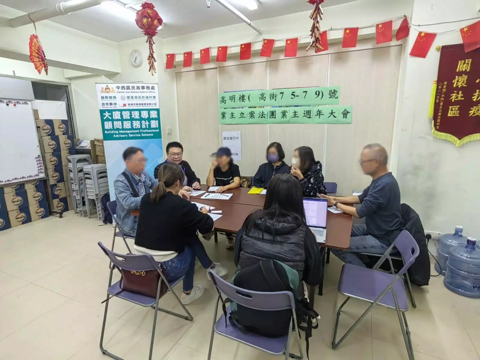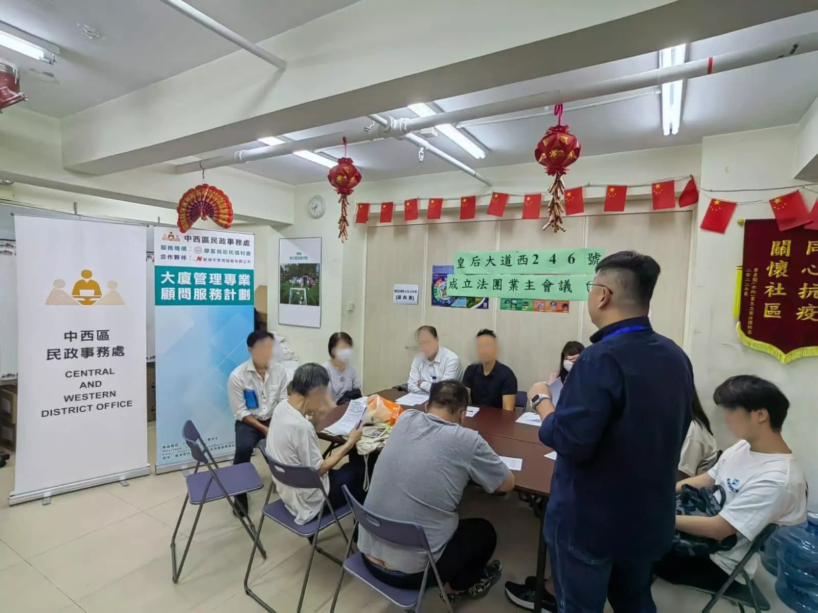 自去年起,中西區民政處委聘摩星嶺街坊福利會與物管公司合作,積極推動區內「三無大廈」成立物業管理法團。截至目前,BMPASS已完成對中西區55幢重點目標大廈的評估,成功協助其中三幢「三無大廈」成立法團,全面提升區內樓宇管理水平及居民安全意識。