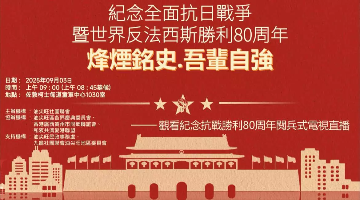 3. 閱兵直播:油尖旺民政處支持油尖旺社團聯會、及魯迅青少年文學獎香港組委會,分別喺區內組織閱兵直播觀看會。
