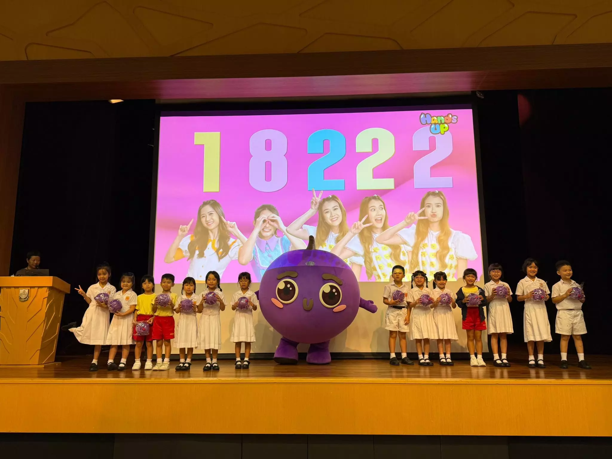 九龍城警區警民關係組昨天邀請提防騙子吉祥物「提子」嚟到民生書院小學,向586位小一及小二年級的學生宣傳防騙訊息。