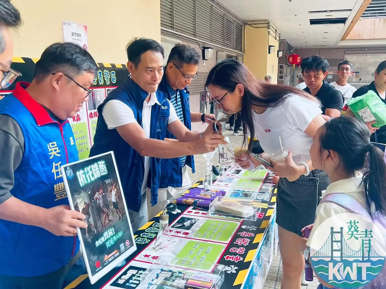 葵青警區聯同一眾葵青區區議員、少年警訊及耆樂警訊會員 ,喺9月18至22號一連五日,展開一連串禁毒宣傳活動 !今次特別安排毒品調查科與浸會大學化學系團隊合作研發嘅「仿製毒品氣味體驗裝置」 ,等大家親身辨識大麻、可卡因、氯胺酮(K仔)、冰毒、依托咪酯等常見毒品氣味,提升禁毒意識 。