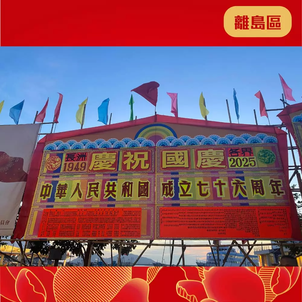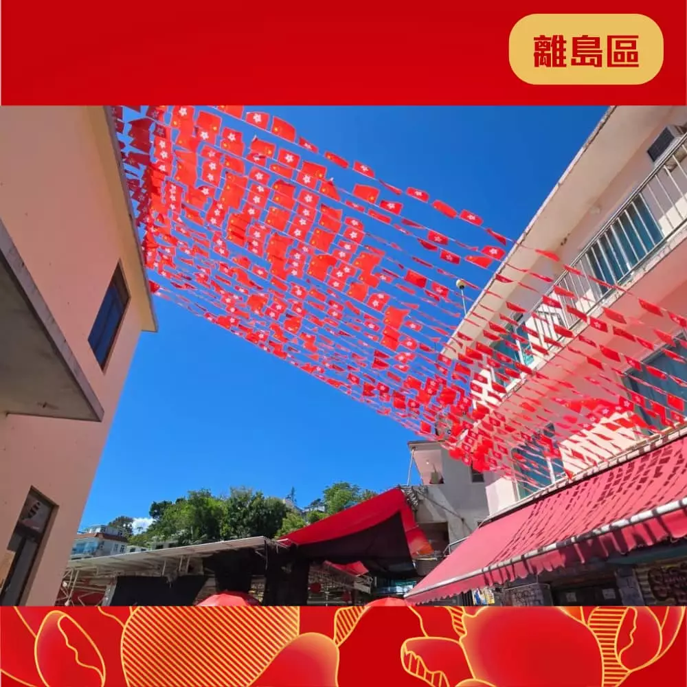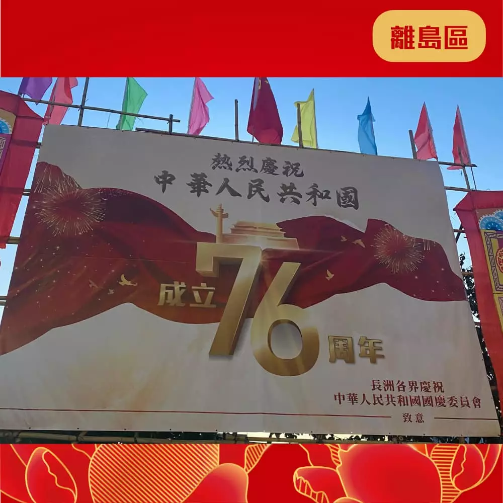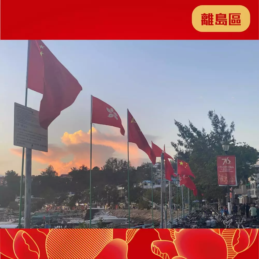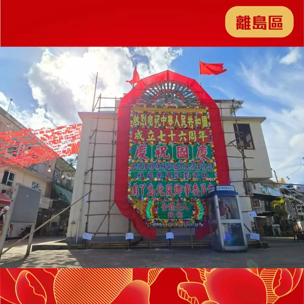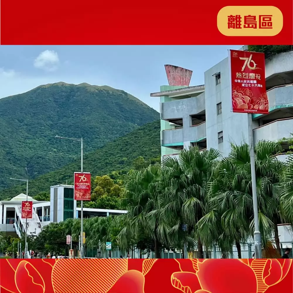 離島民政處聯同地區團體已經喺區內展示各種絢麗奪目嘅國慶宣傳品同裝飾 ,當中包括燈柱彩旗、花牌及海報等,為社區注入濃厚的國慶喜慶氛圍 ,齊齊與民慶祝國慶