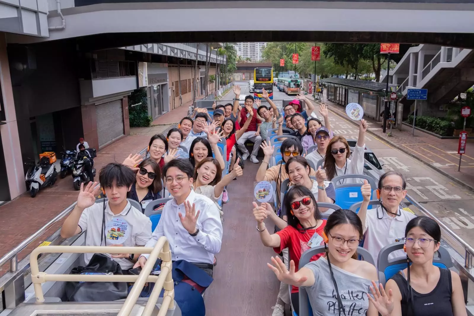 作為首次將雙層開篷巴士 開到沙田地標——新城巿廣場百步梯前,好多街坊及旅客都爭住同開篷巴士 影相 !文旅巴士遊首航有約20位來自香港城市大學嘅留學生 同30多位街坊參加。大家一路坐住開篷巴士欣賞沙田美景,聽着導賞,心情十分雀躍,小朋友仲忍唔住大聲歡呼 !