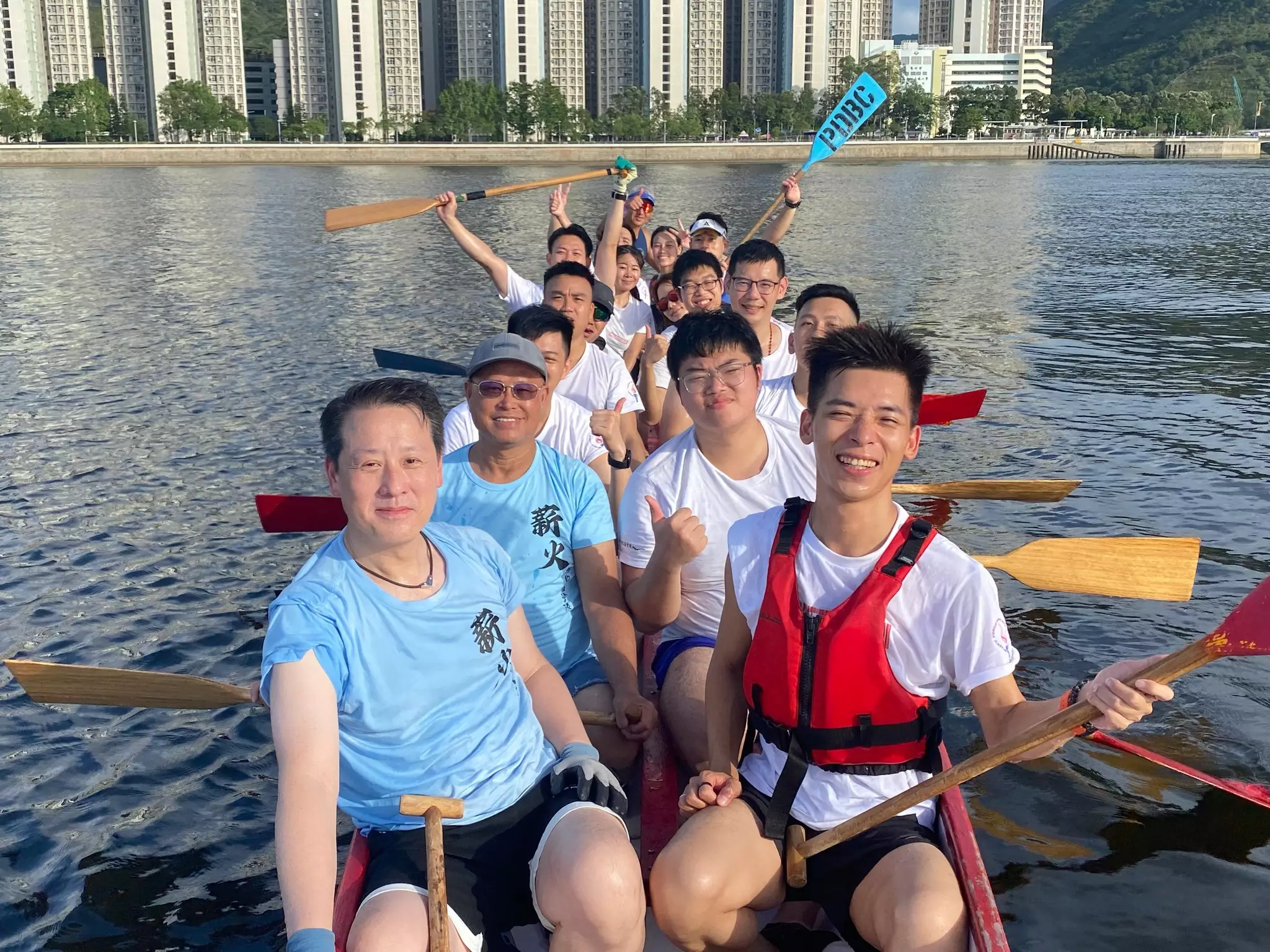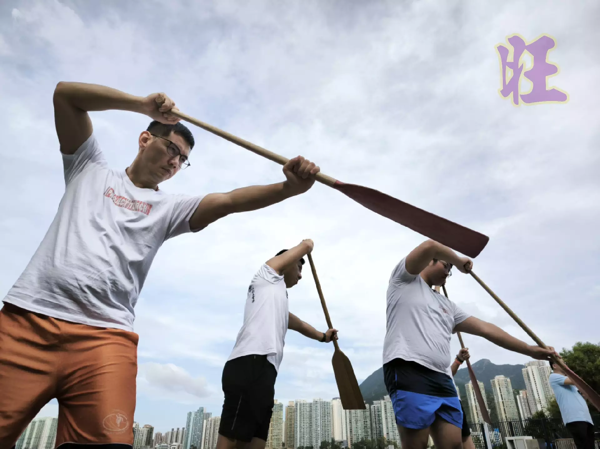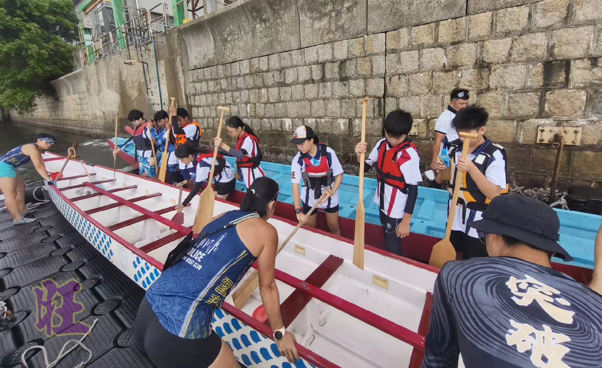 訓練過程中,各位龍舟健兒都精神抖擻,即使天氣不似預期,由早上滂沱大雨,到午後陽光普照,仍無阻龍舟健兒熾熱的心,盡情揮灑汗水,經短暫指導「入拉抽回」4個基本動作後,已經做到整齊劃一,展現一龍一槳一心的團隊精神!同時亦感謝警察龍舟會兩位教練Cindy Madam,Elaine Madam對龍舟健兒們傾囊相授的教導。