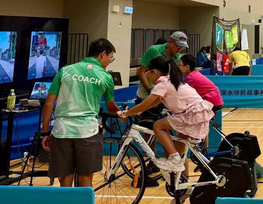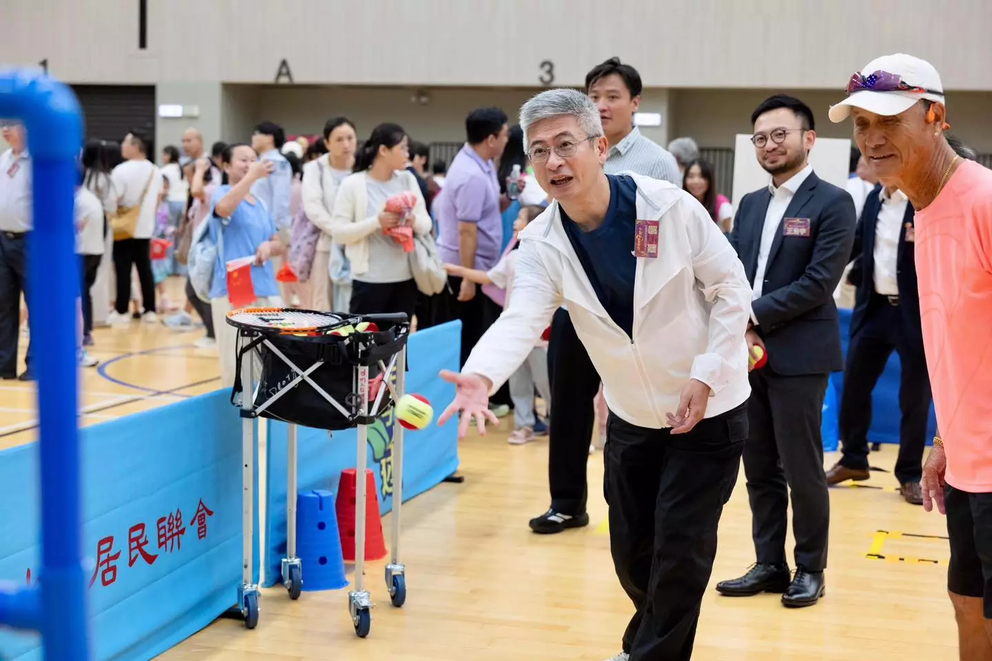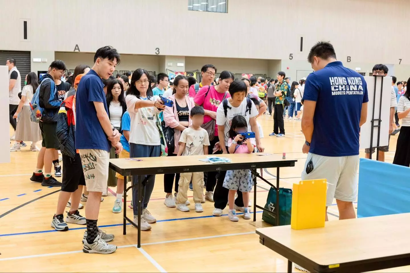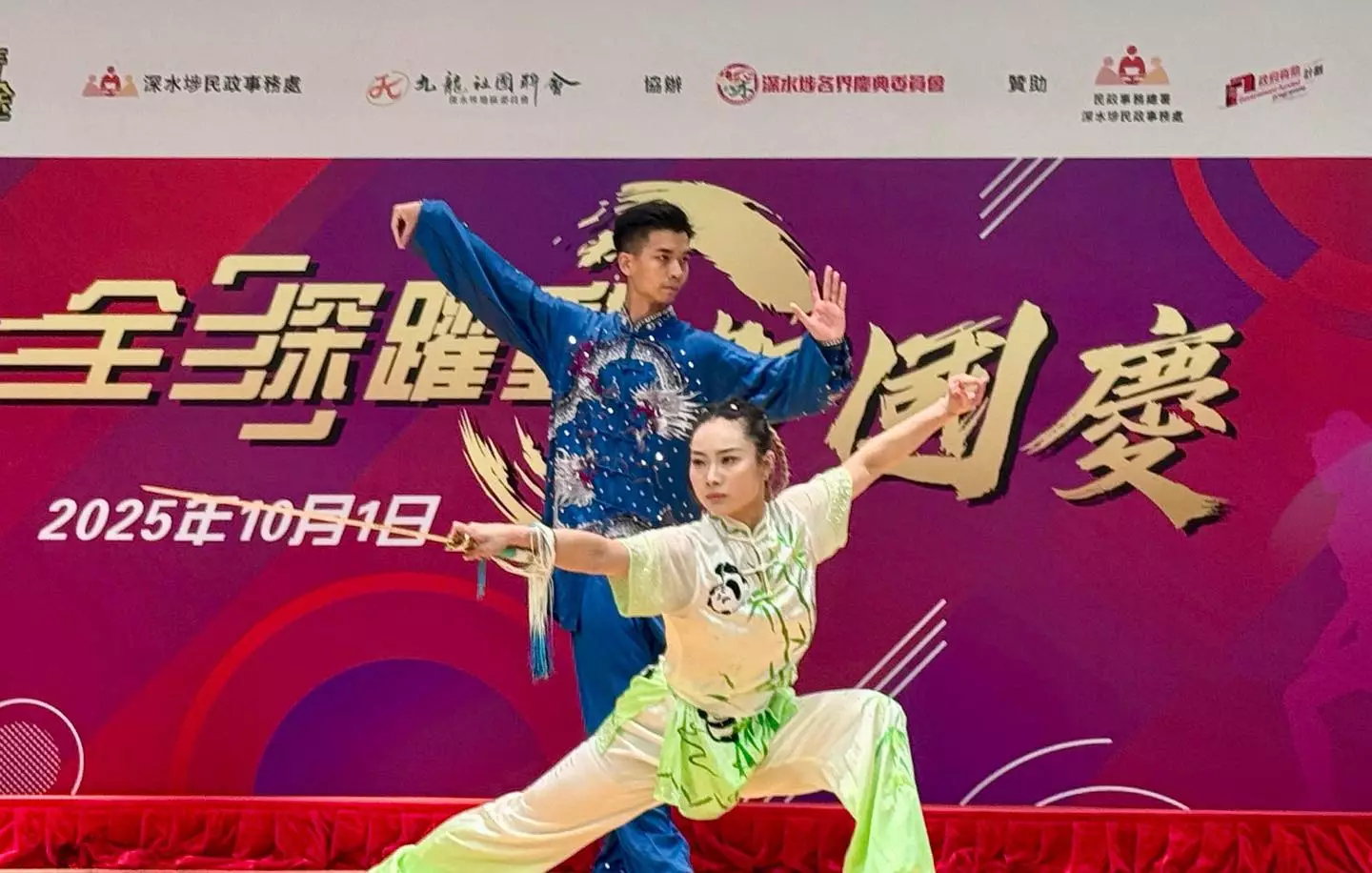 為慶祝國慶76周年及迎接第15屆全運會,今日(1/10)深水埗民政處聯同深水埗居民聯會、青途發展社區發展協會及九龍社團聯會深水埗地區委員會喺深水埗體育館邀請咗兩位世運會金牌得主楊頌熹及沈曉榆到場表演武術,同場更加可以試玩唔同運動,包括武術、單車、小型網球、象棋、鐳射槍、硬地滾球、手球及霹靂舞等。現場無論係大人小朋友都玩得好投入,小朋友喺度模仿武術動作同舞蹈耍得有板有眼。專業運動員仲即場指導一眾嘉賓嘗試手球、鐳射槍、武術同小型網球添。