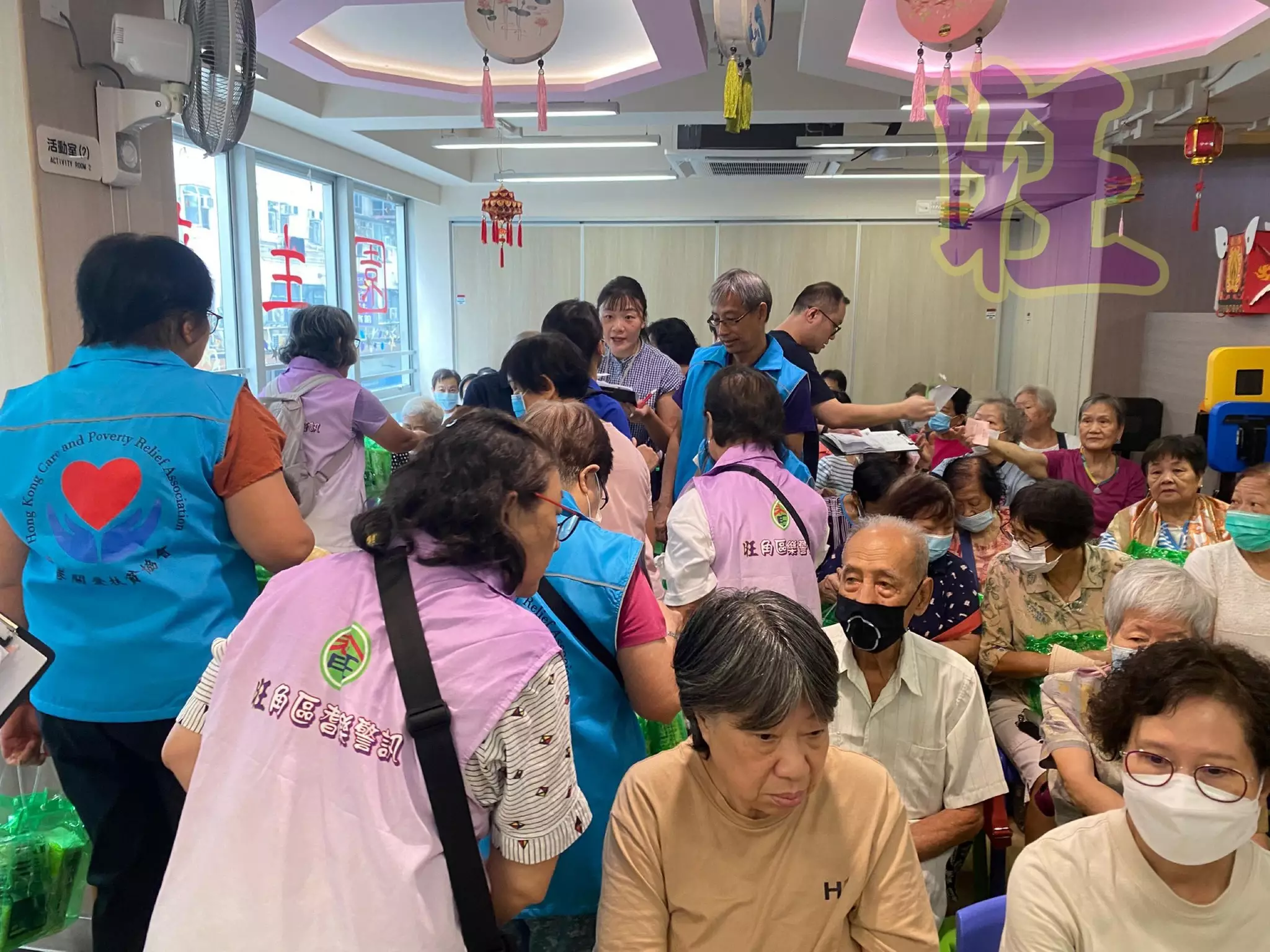 中秋佳節將近,旺角區耆樂警訊聯同香港關愛扶貧協會的義工團隊,1連3日(9月26、29及30日)走進嗇色園主辦可旺耆英鄰舍中心,為近300位老友記送上節日祝福與關懷,並派發近3000個愛心福袋,將溫暖傳遍社區!義工們更與長者親切交流,聆聽他們的生活點滴,讓這個中秋不僅團圓,更充滿人情溫度。