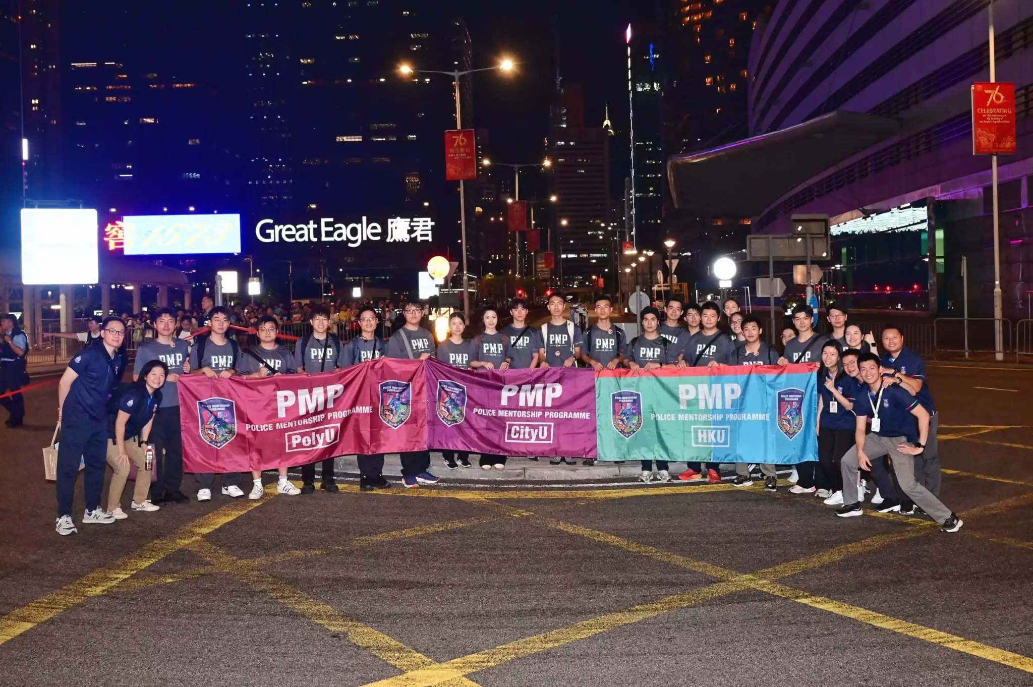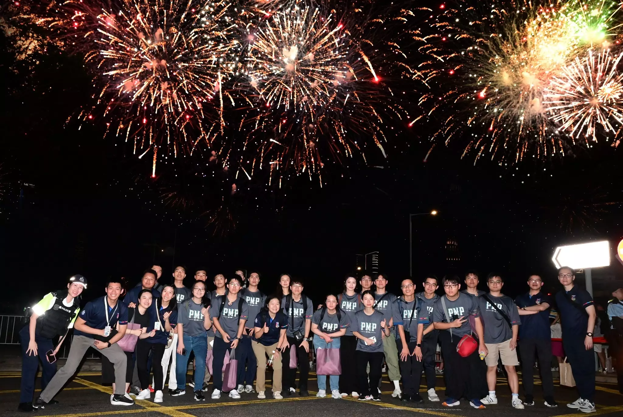 警隊學長計劃於十月一日國慶日舉行特別活動,來自城巿大學、香港大學及理工大學的導師與學員齊聚灣仔金紫荊廣場,參與國慶煙花匯演慶祝活動。 活動期間,學員除了感受節日氣氛,更在匯演現場擔任不同崗位,親身體驗警隊的人群管理措施,並協助推廣防騙宣傳工作。透過實際參與,學員對警務運作有更深入認識,同時體會警民合作的重要性。 維港上空綻放的璀璨煙花,為慶祝中華人民共和國成立七十六周年增添歡樂氣氛。這類活動讓年輕學員在節慶環境中學習警務知識,加深對警隊工作的了解,同時培養服務社會的精神。